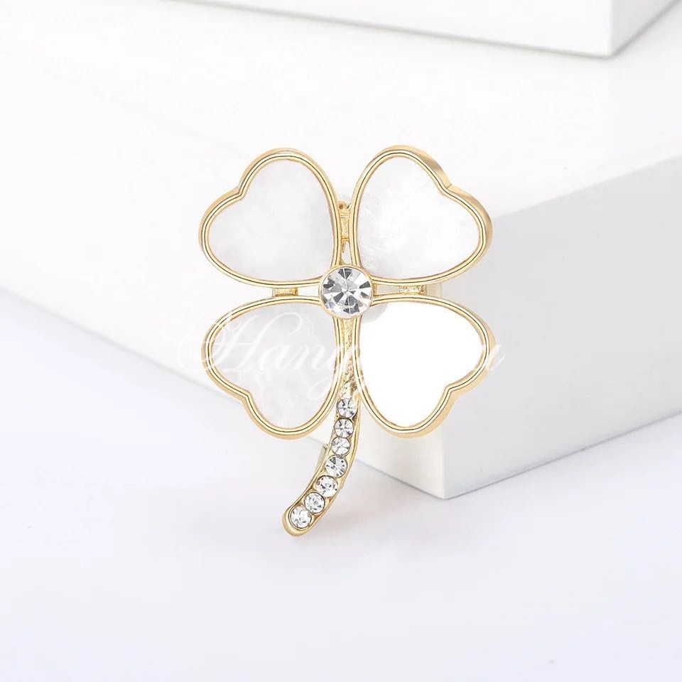 Елегантна брошка “детелина” в бял цвят- код 6429