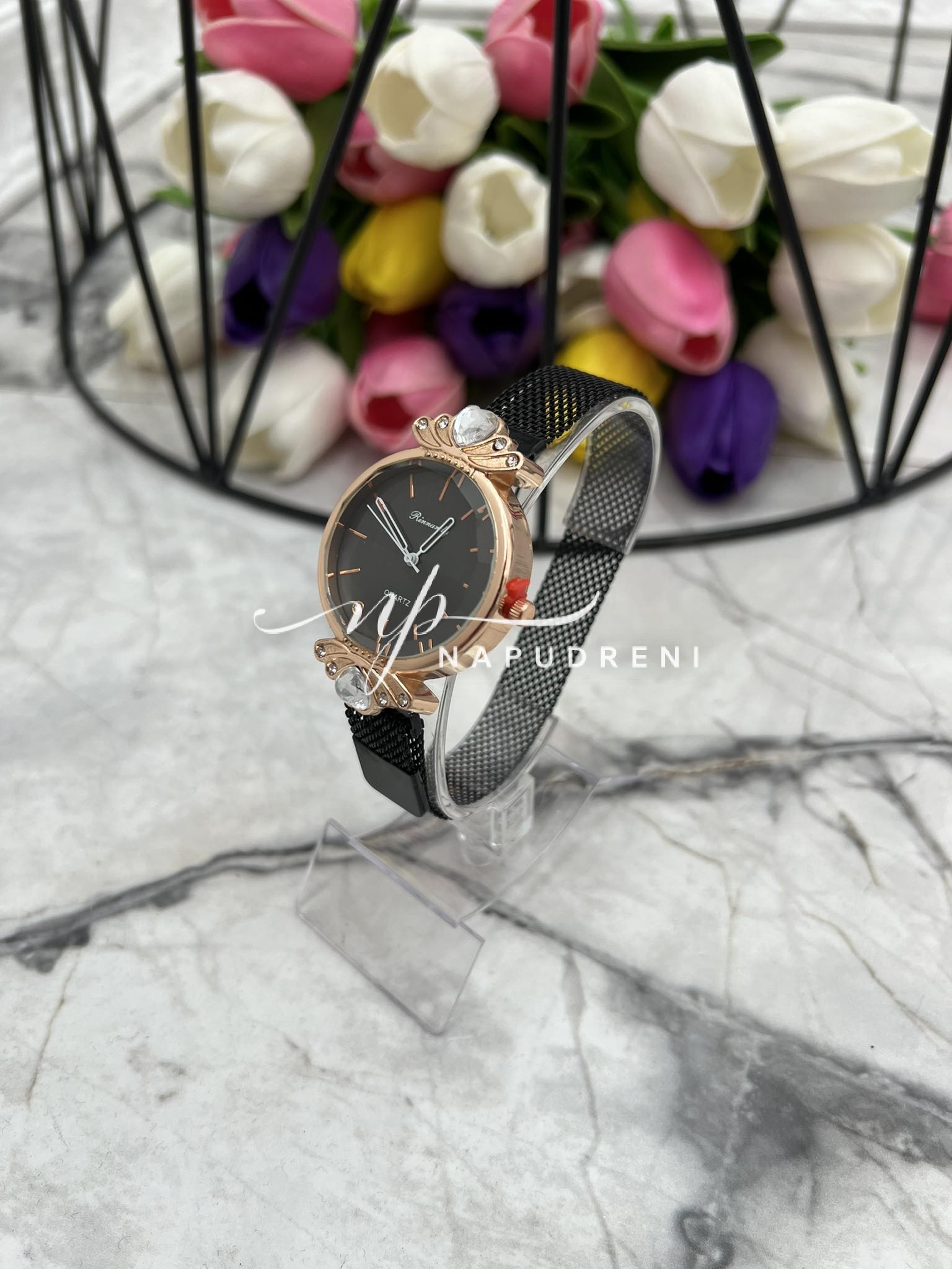 Be the first to review “Дамски часовник с камъче сърце в черен цвят – код 7406”