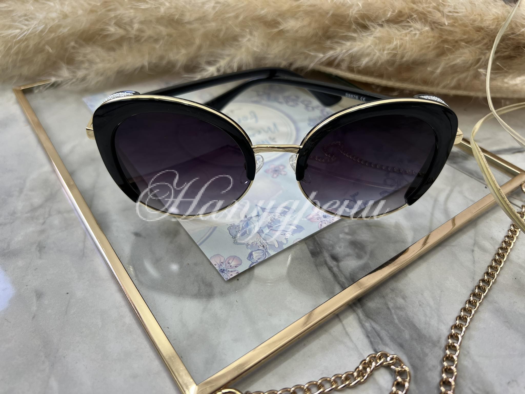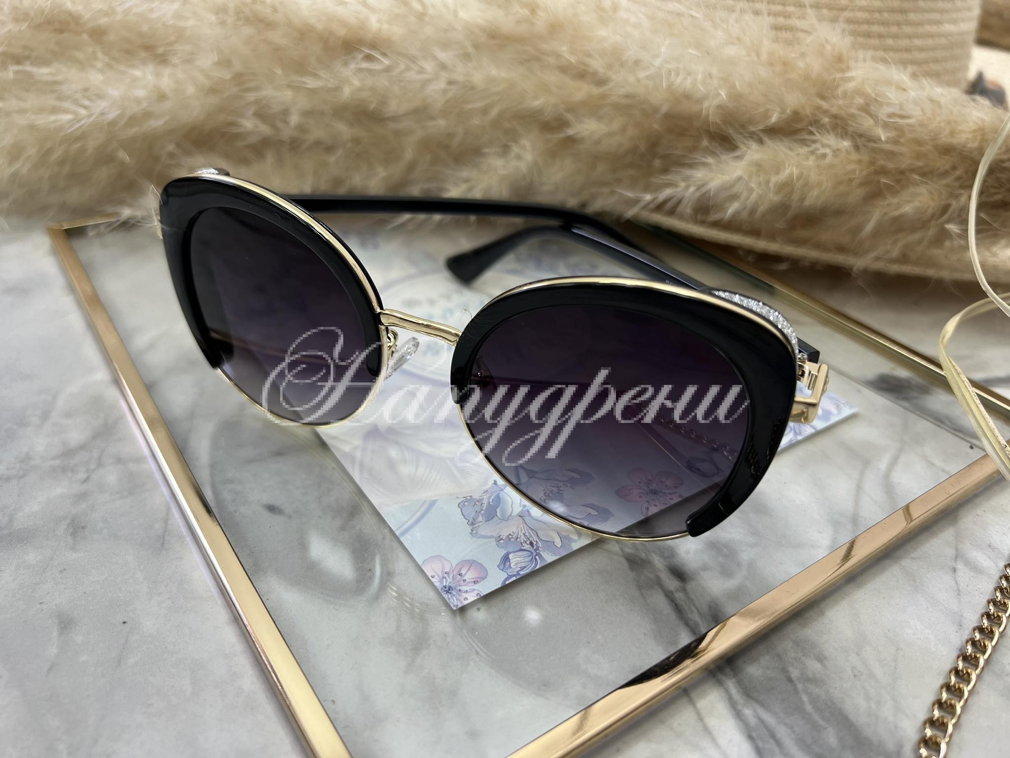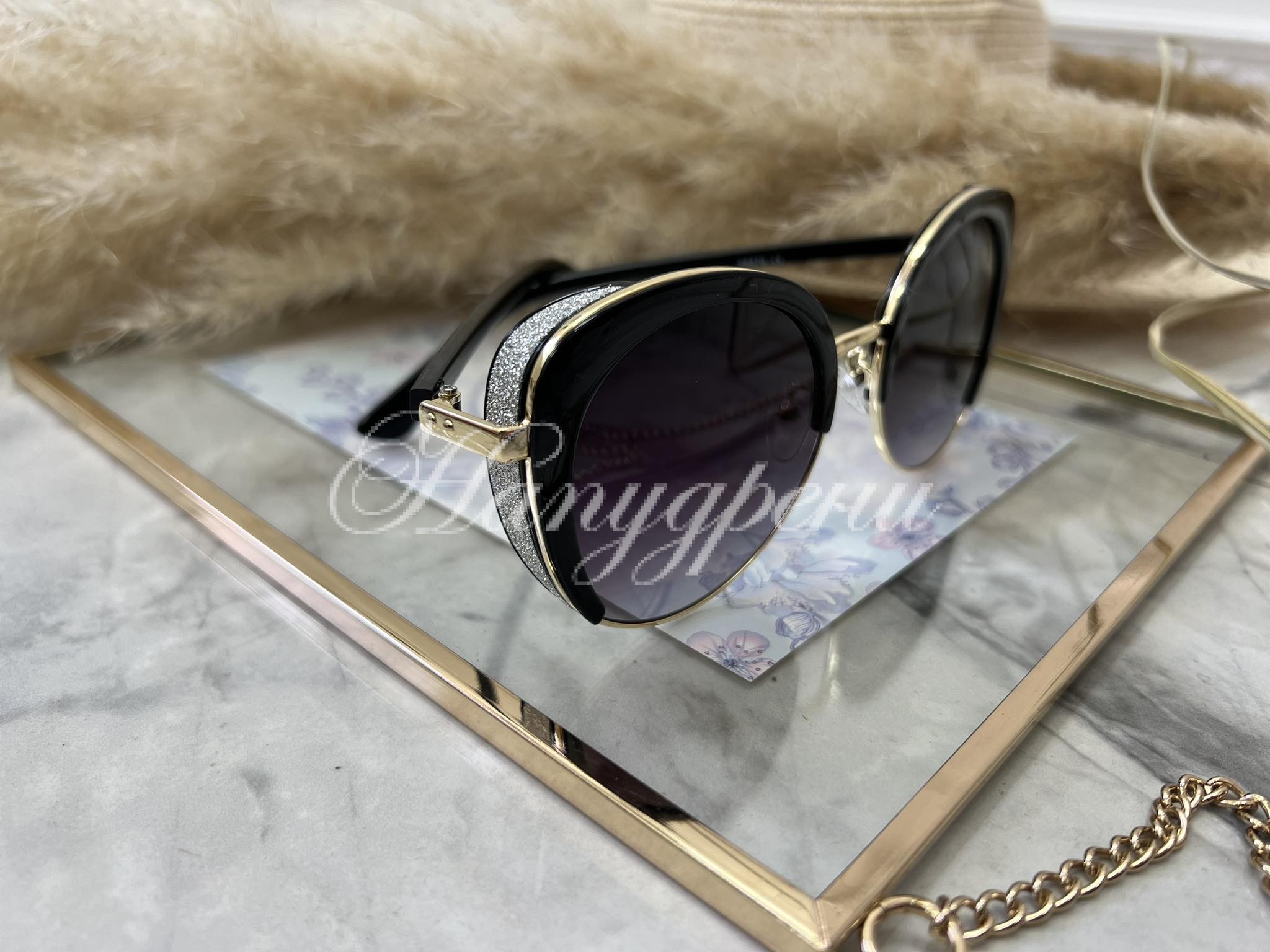 Ефектни очила с брокат в черно – код 5477