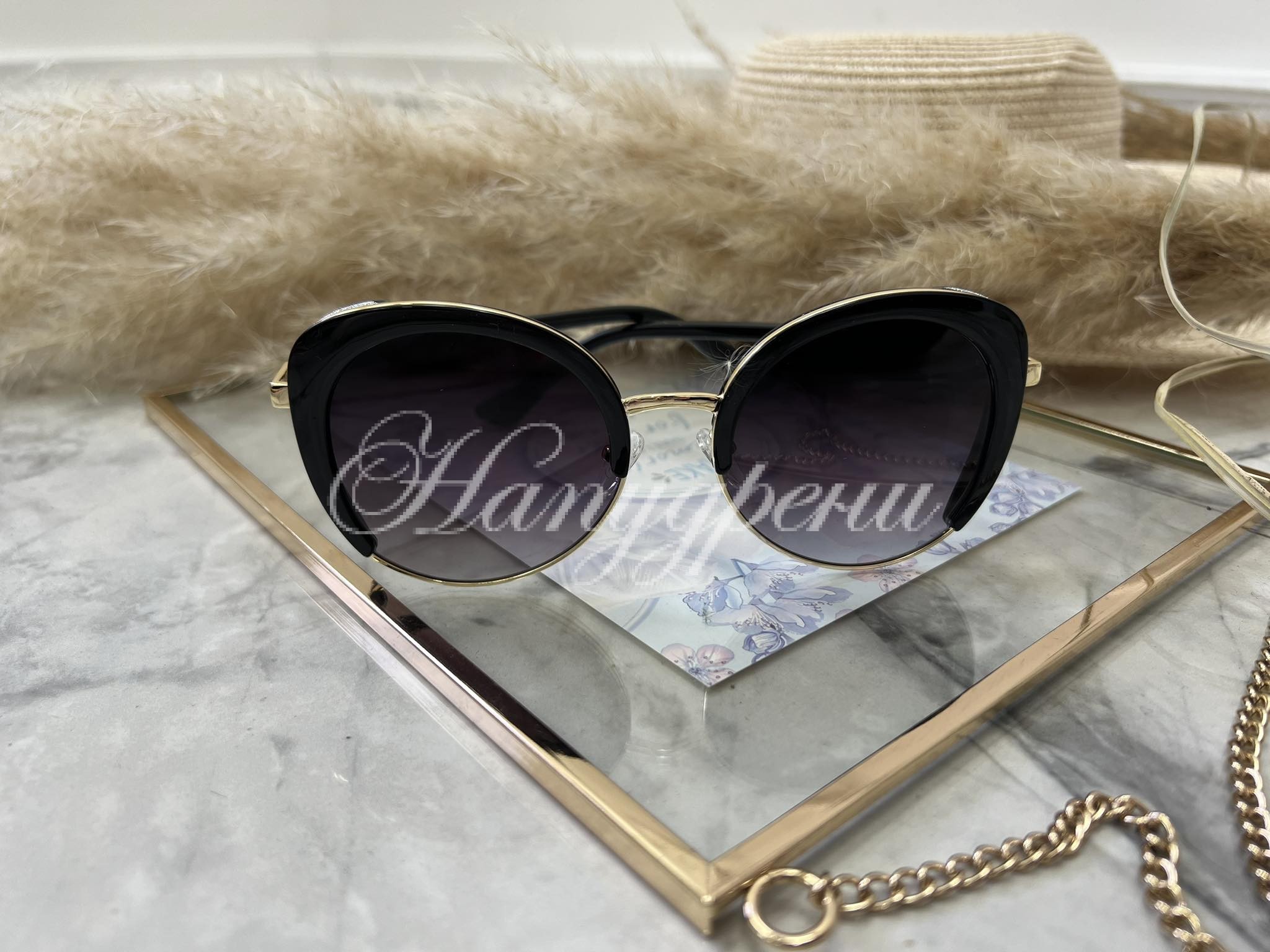 • Със златна рамка.