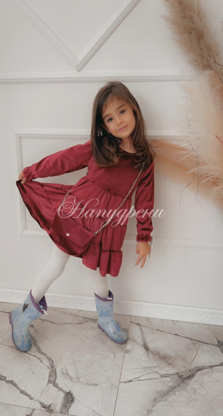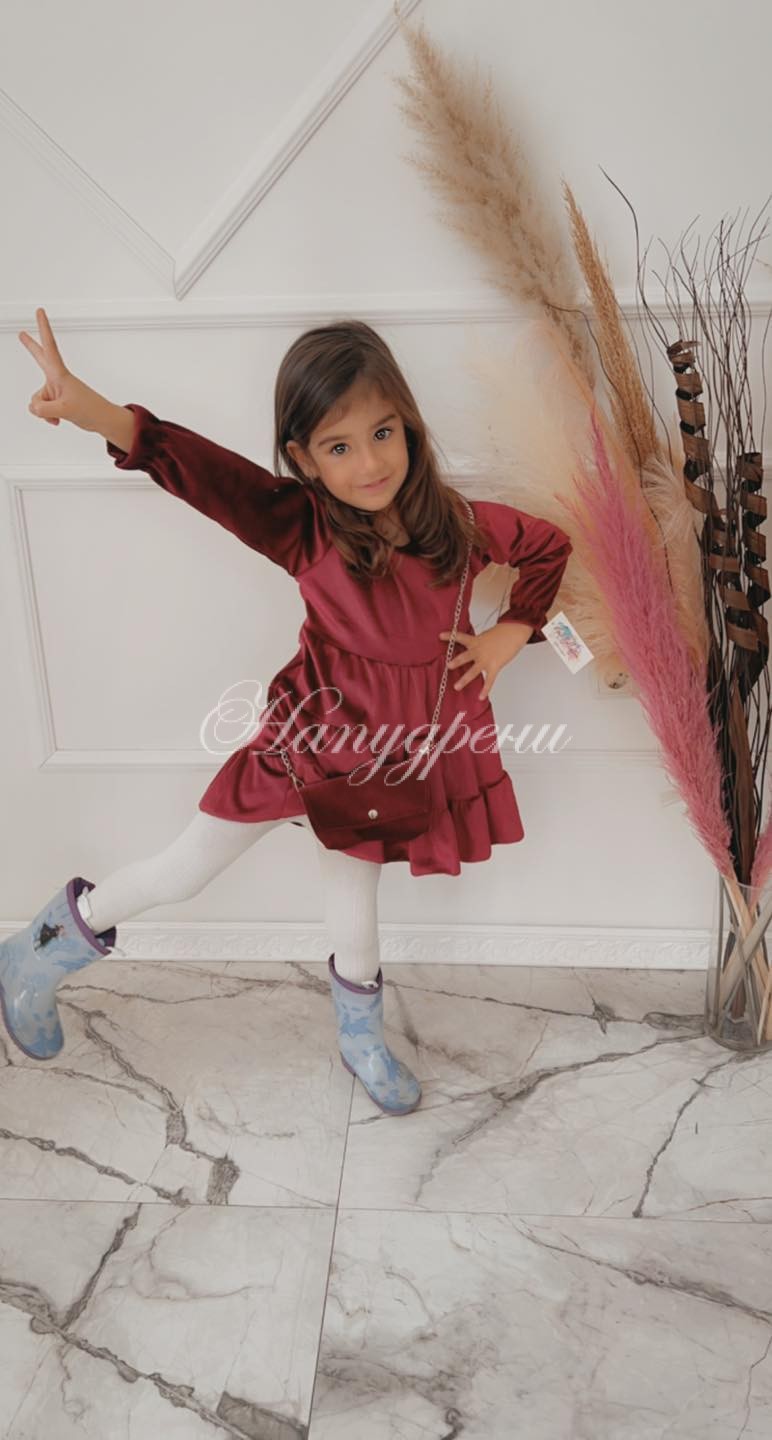 Be the first to review “Детска велурена рокля в цвят бордо – код 196”