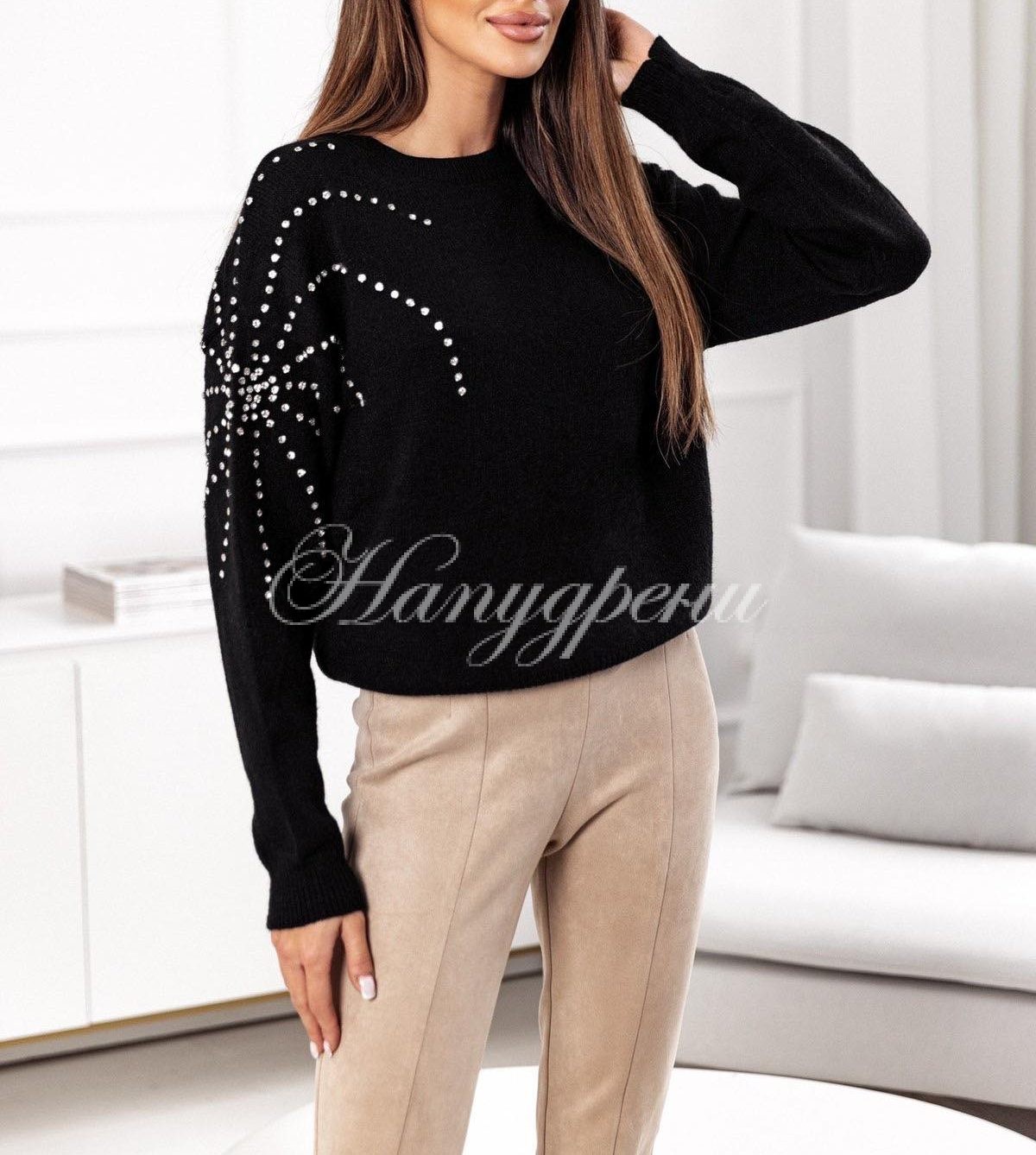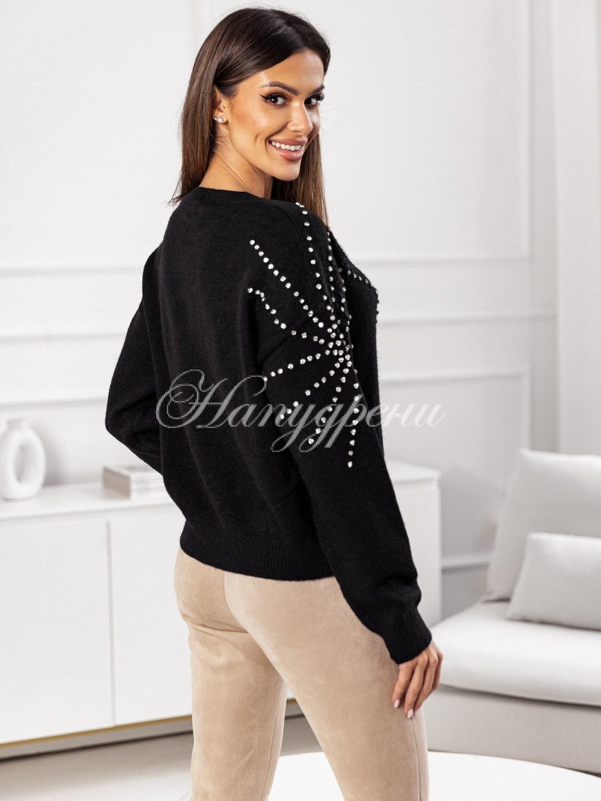 Дамска блуза с ефектен ръкав в черен цвят – код 6217