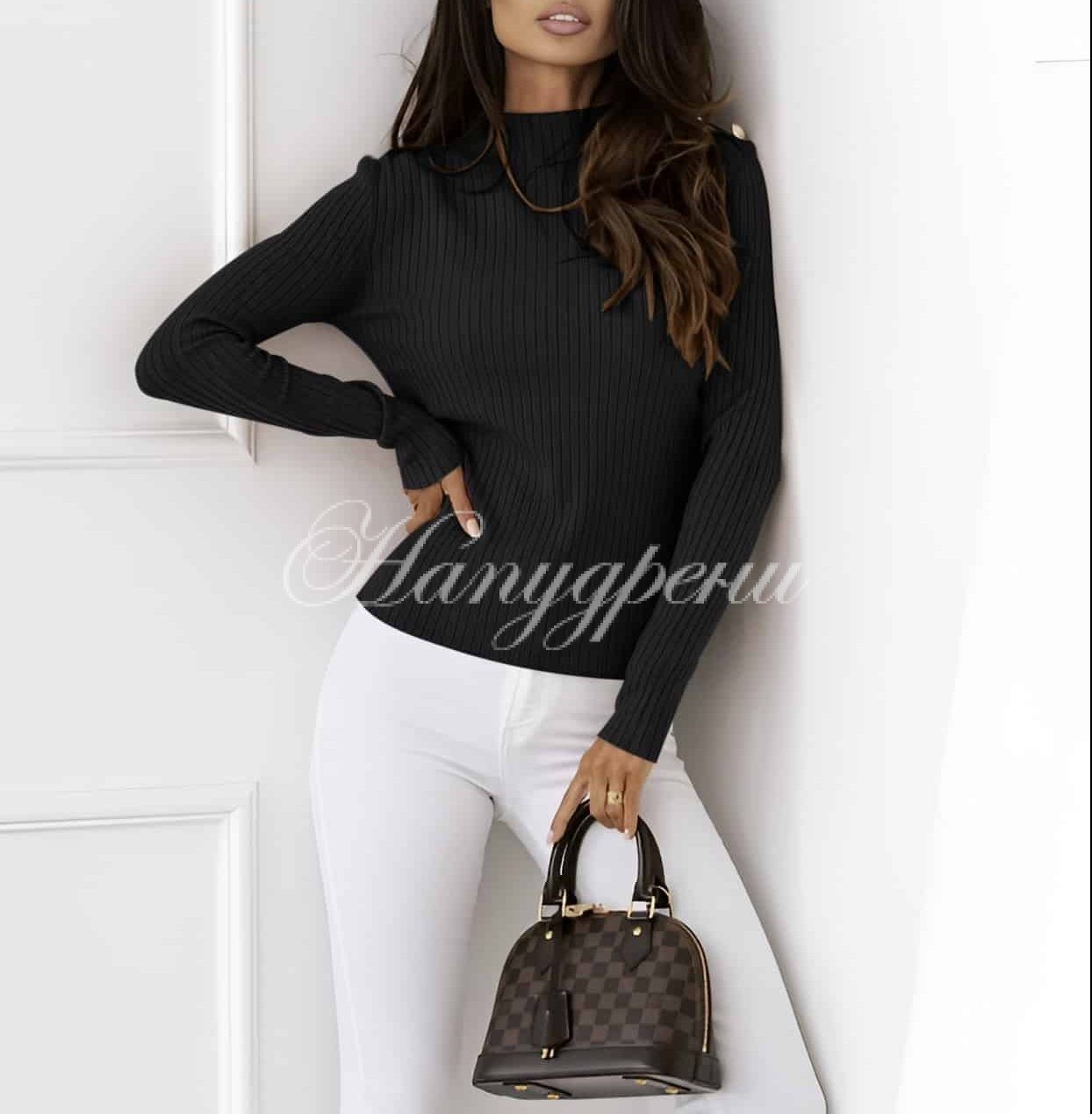Дамска блуза с ефектни копчета в черен цвят – код 5743