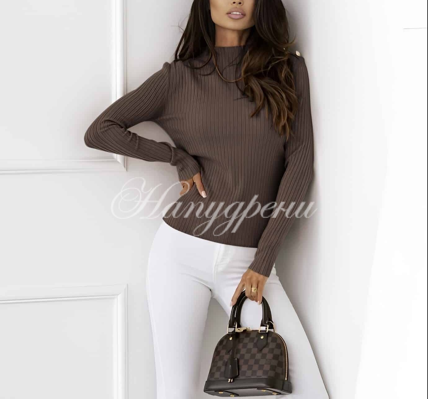 Дамска блуза с ефектни копчета в кафяв цвят – код 5744