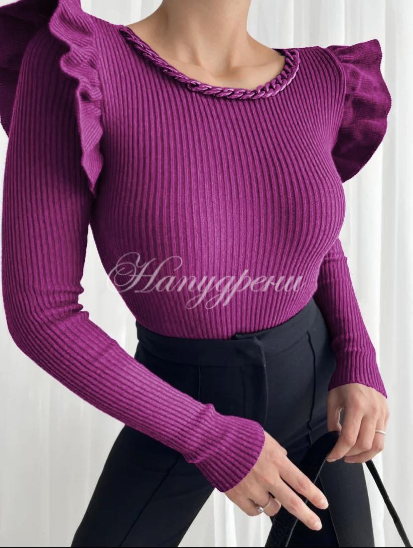 Дамска блуза с ефектно деколте и къдрички в лилав цвят – код 6179