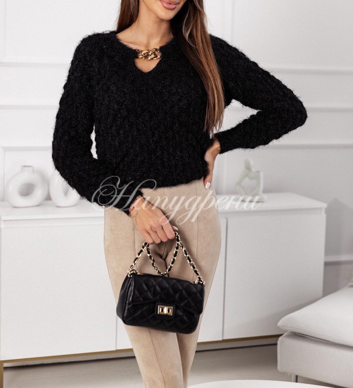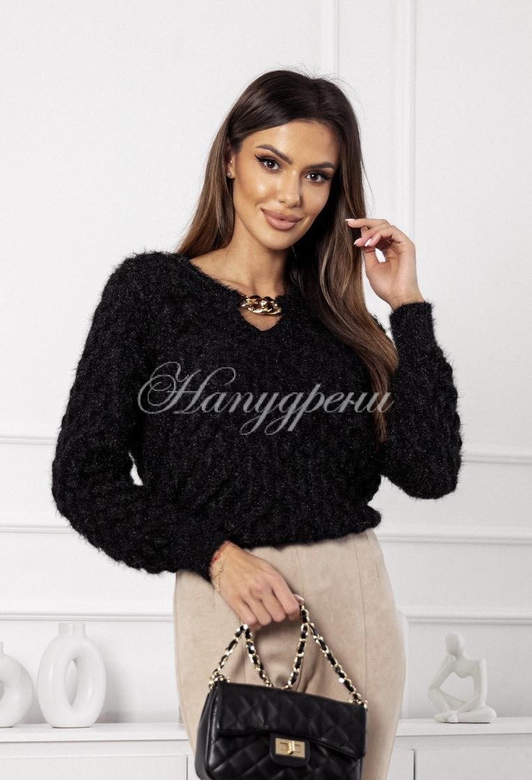 Дамска блуза с ефектно деколте в черен цвят – код 6220
