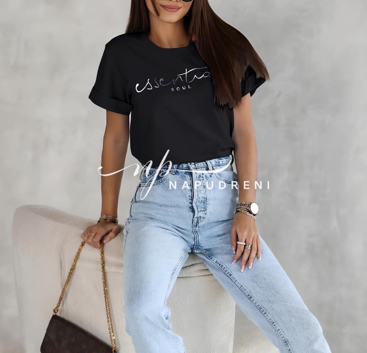 Be the first to review “Дамска тренди тениска в черен цвят – код 7115”