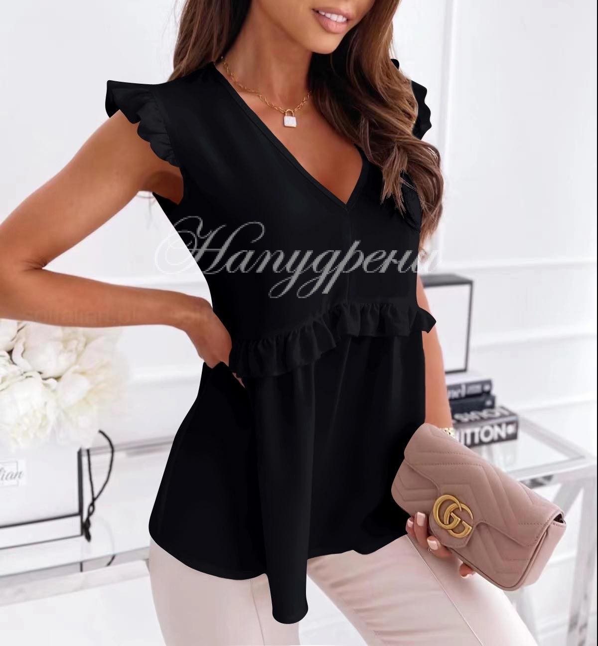 Дамски топ с къдрички “Magma” в черен цвят – код 4684