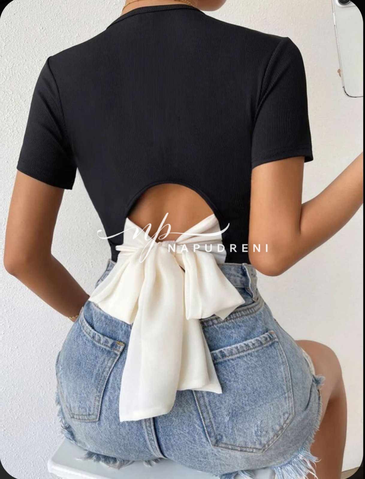 Дамски топ с панделка в черен цвят – код 7218