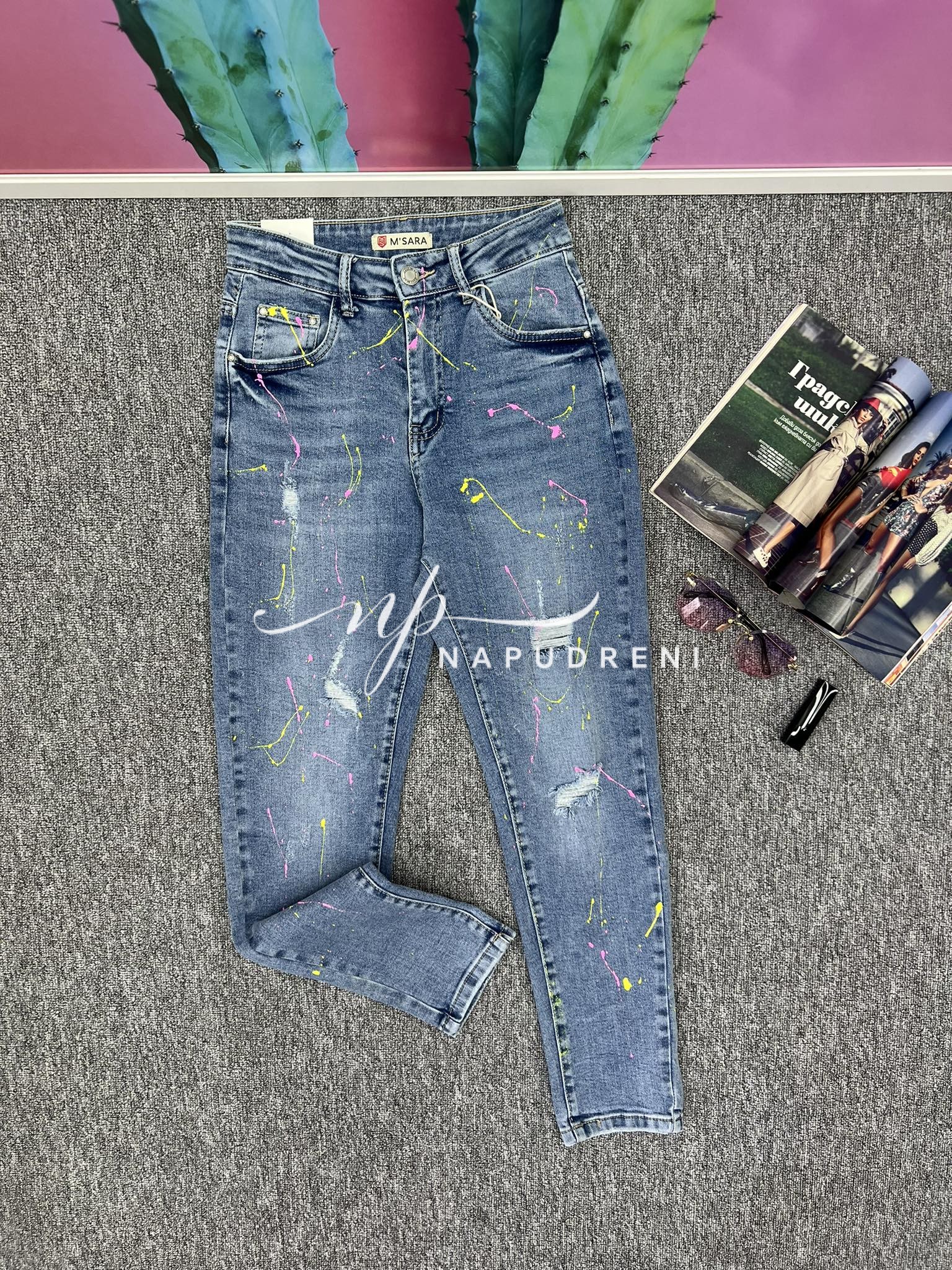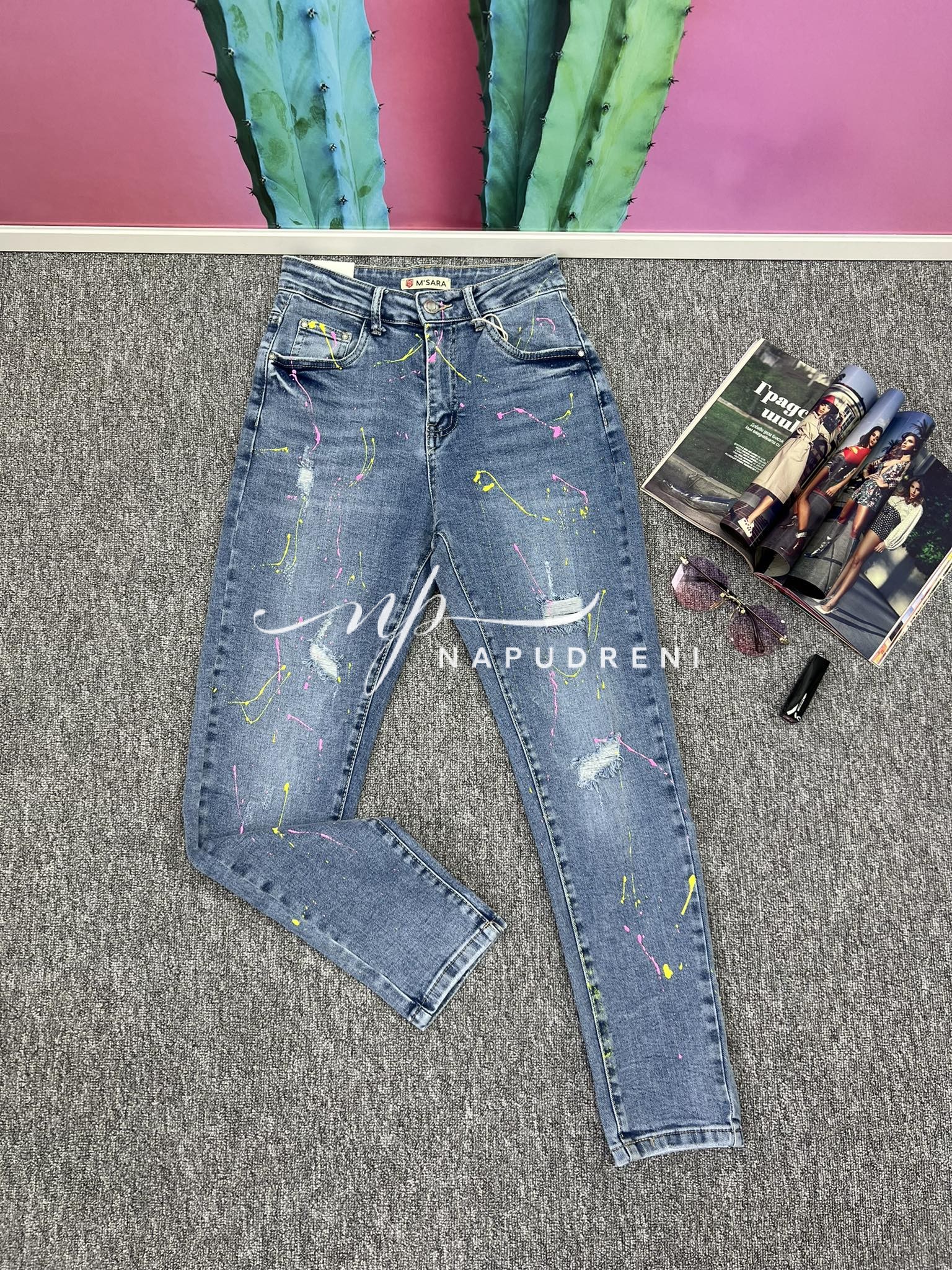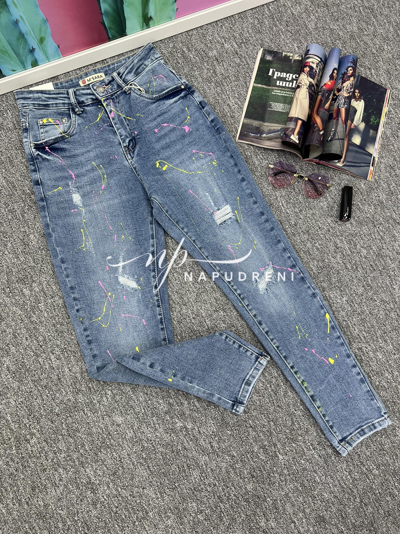 Be the first to review “Дамски дънки с жълти пръски – код 6781”