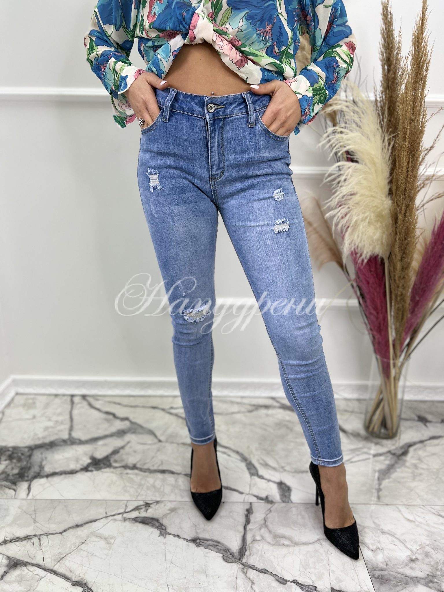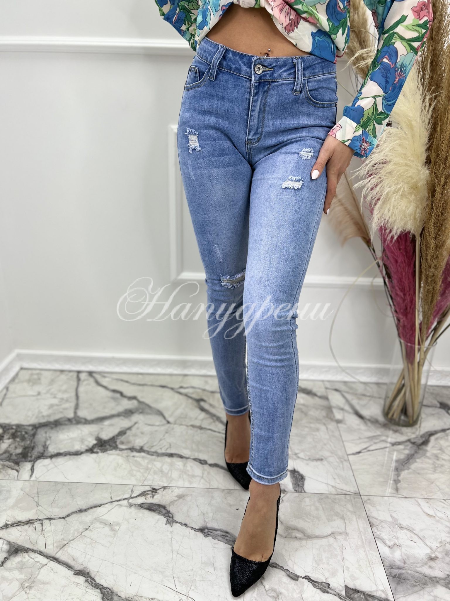 - Материя: деним с еластичност