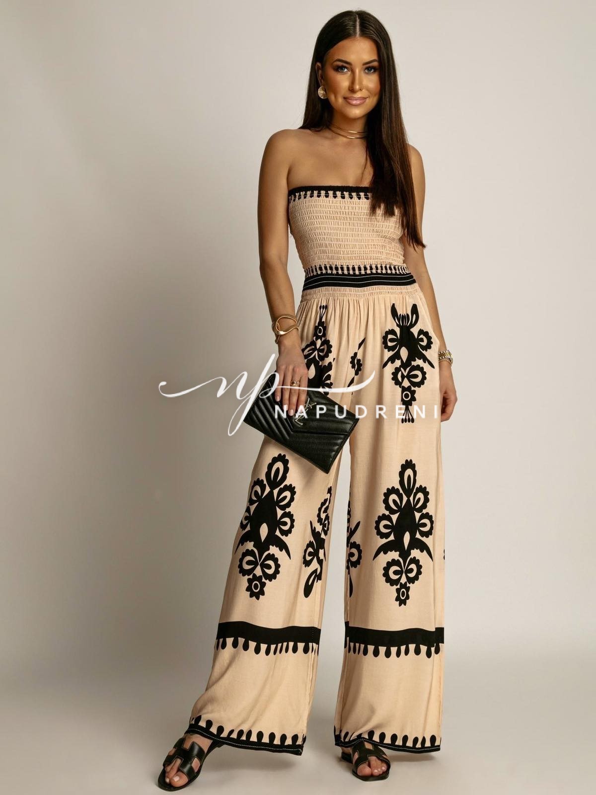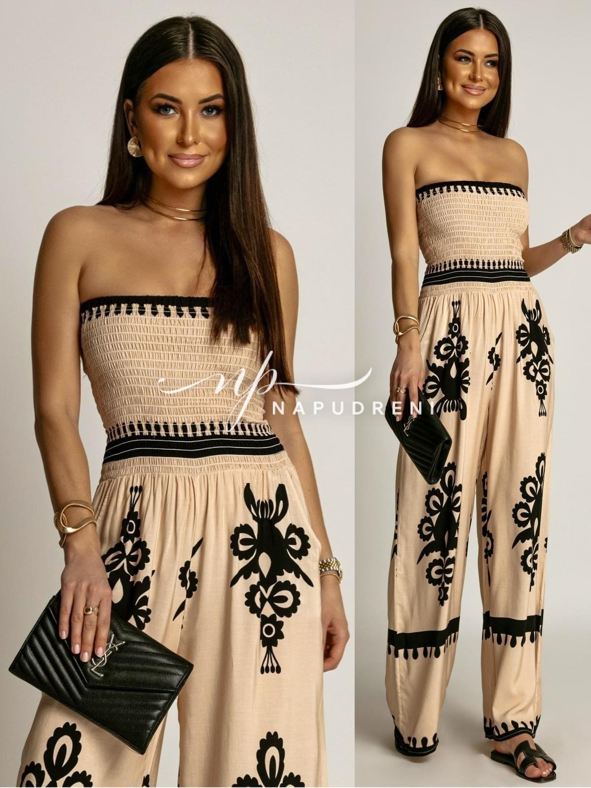 Дамски гащеризон с ефектни орнаменти в бежов цвят – код 7441