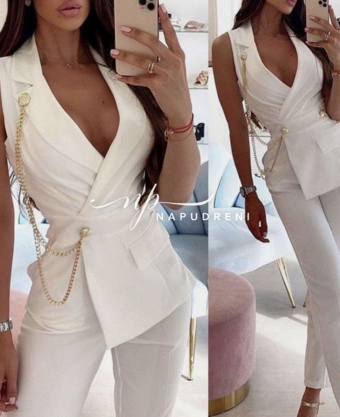 Be the first to review “Дамски гащеризон със златиста верижка в бял цвят – код 6930”