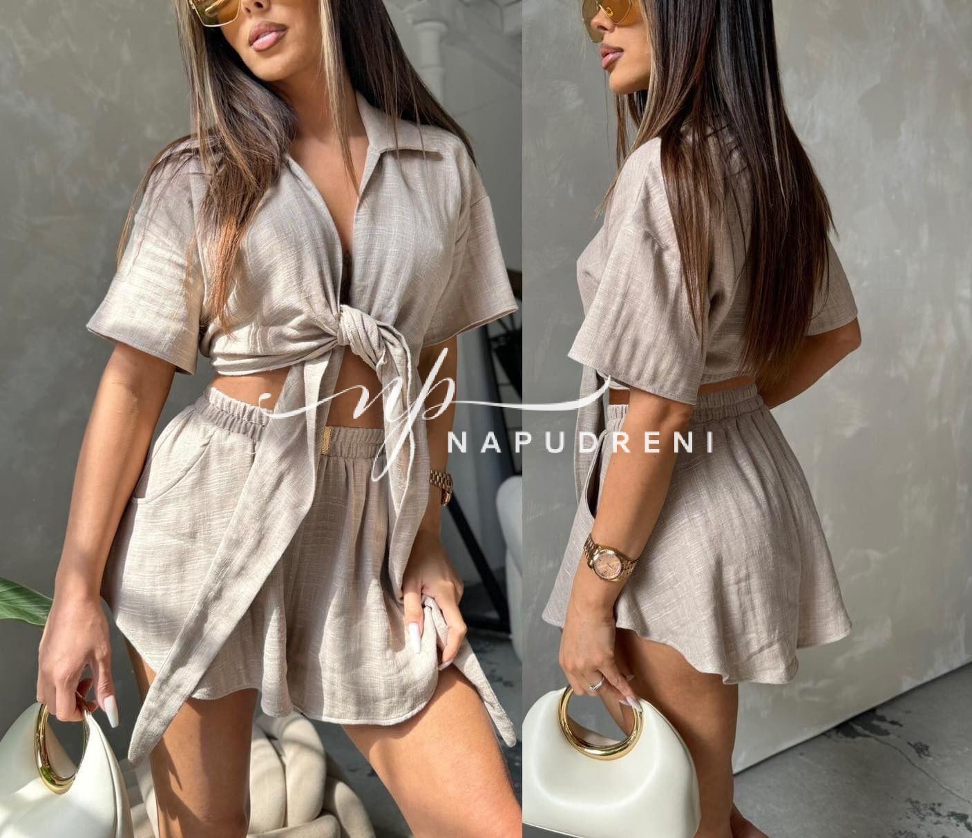Дамски комплект от риза и панталонки в бежов цвят – код 7359