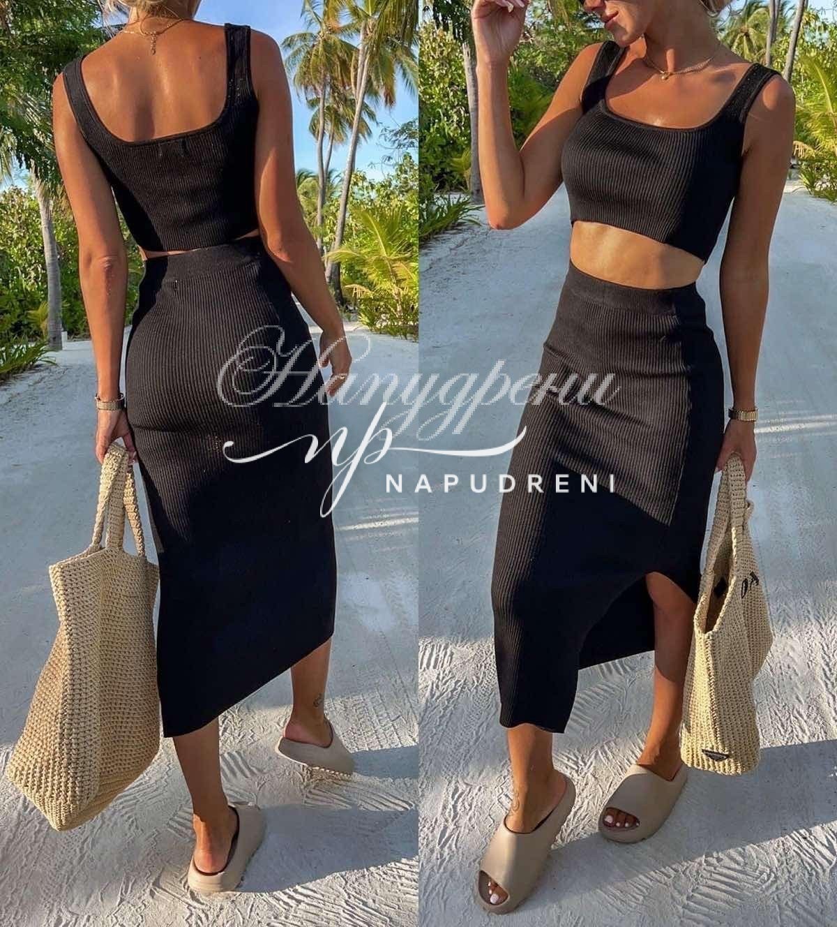 - Дължина: къс топ и асиметрична пола по тялото