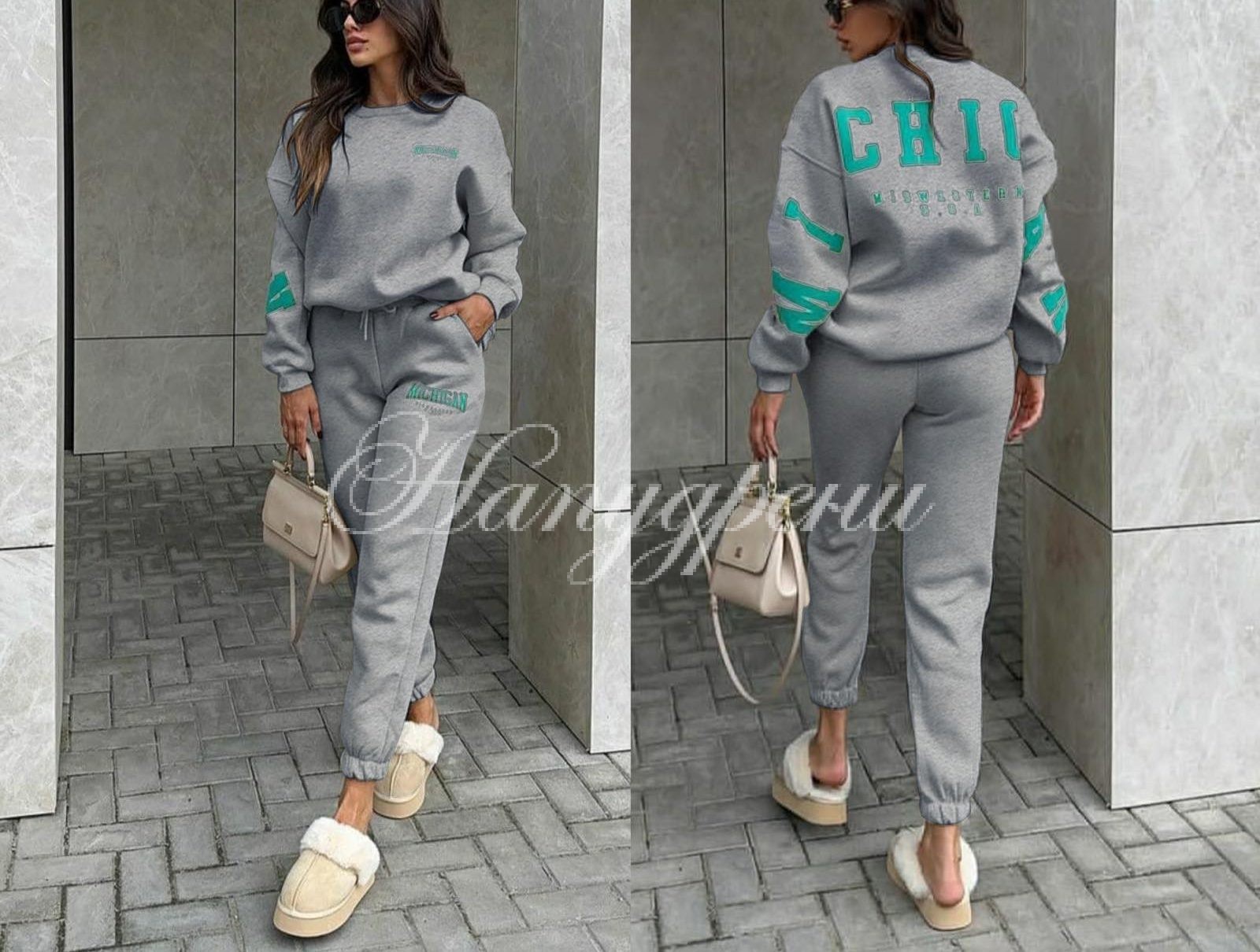 Спортен сет “Michigan” в сив цвят със зелени надписи – код 6074