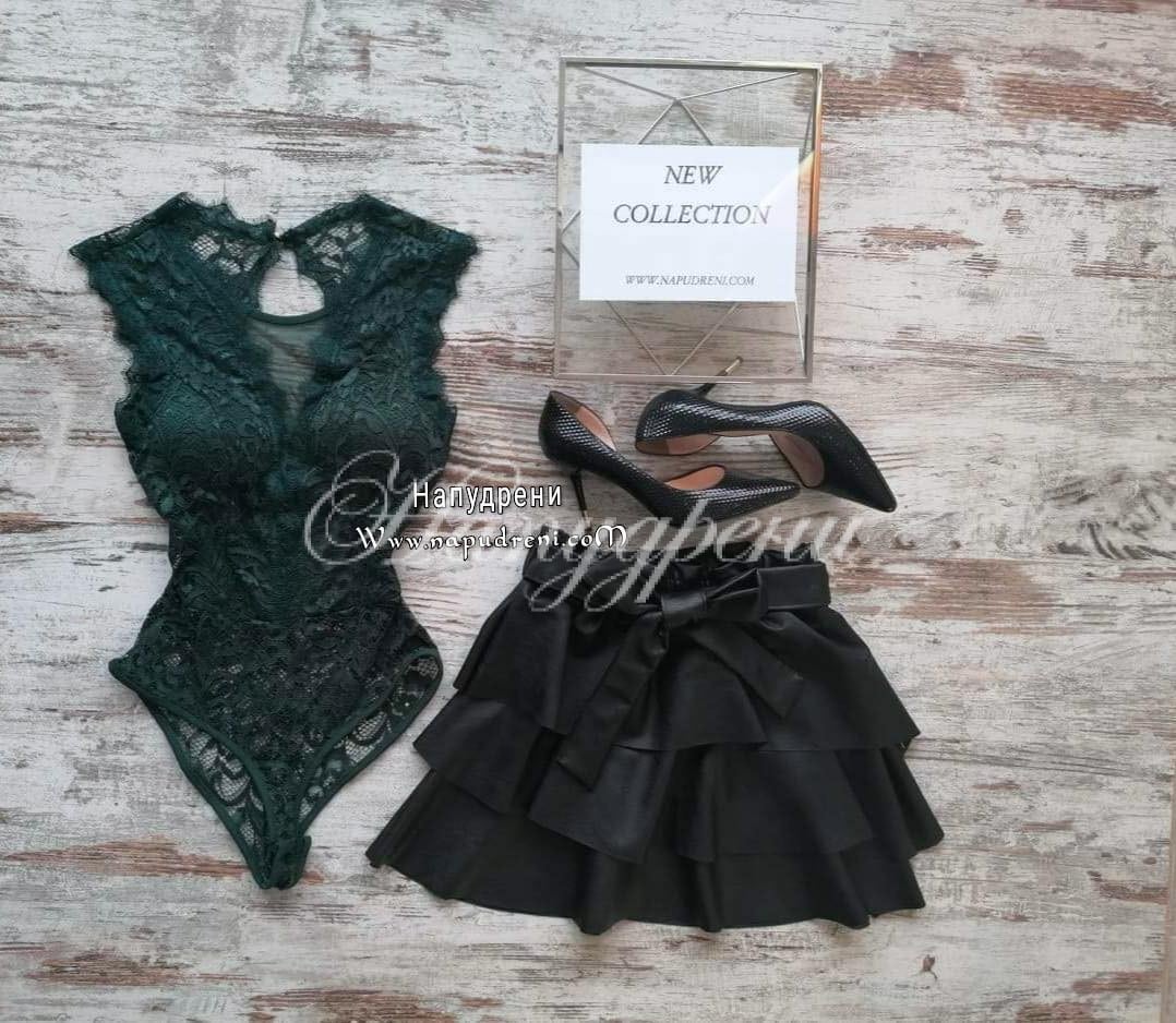 Горната част е дантелено боди, с изрязан гръб.