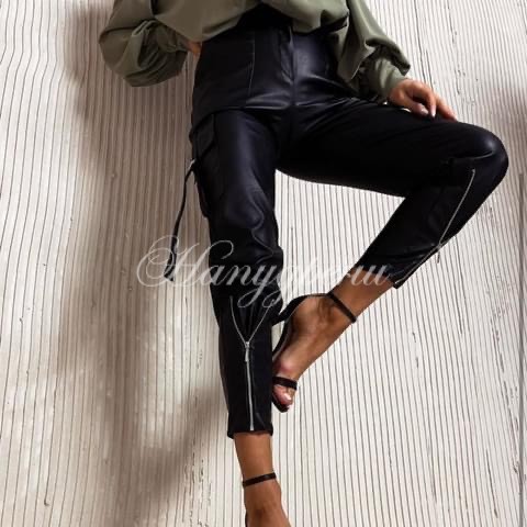 Моделът е с реални джобове в областта на ханша и декоративни ципове по дължината на крака.