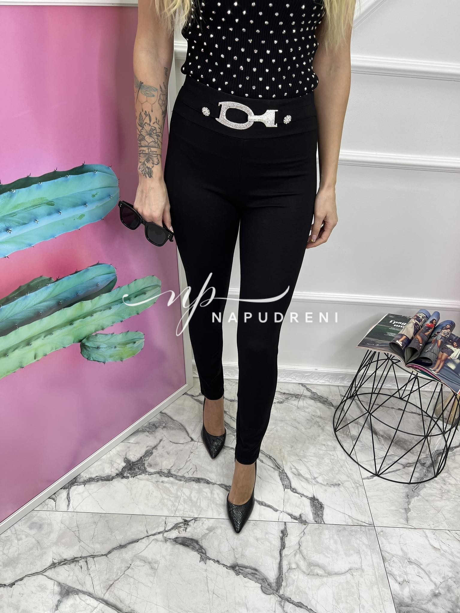 Дамски панталон с ефектна катарама в черен цвят – код 6725