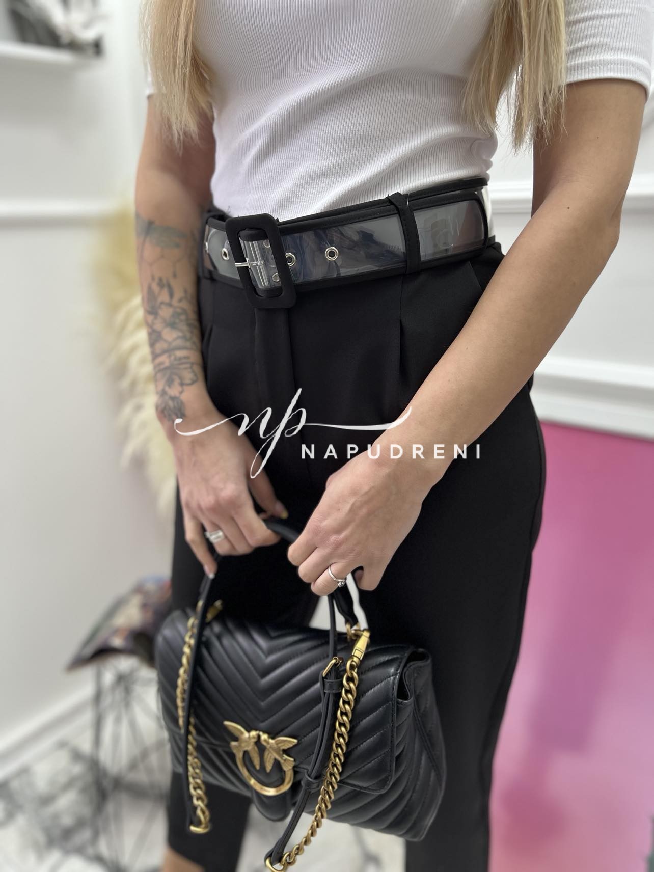 Дамски панталон с прозрачен колан в черен цвят – код 6788
