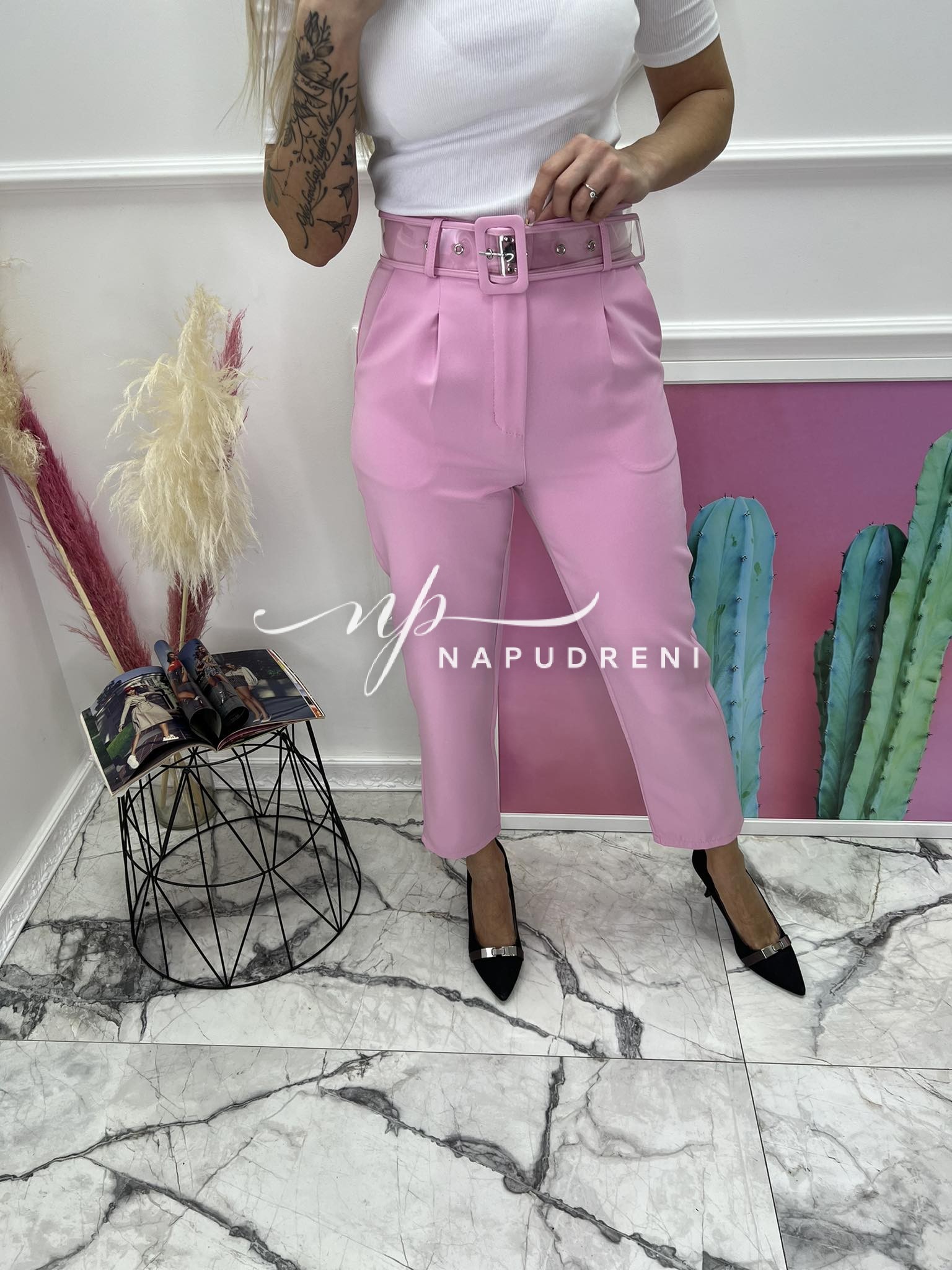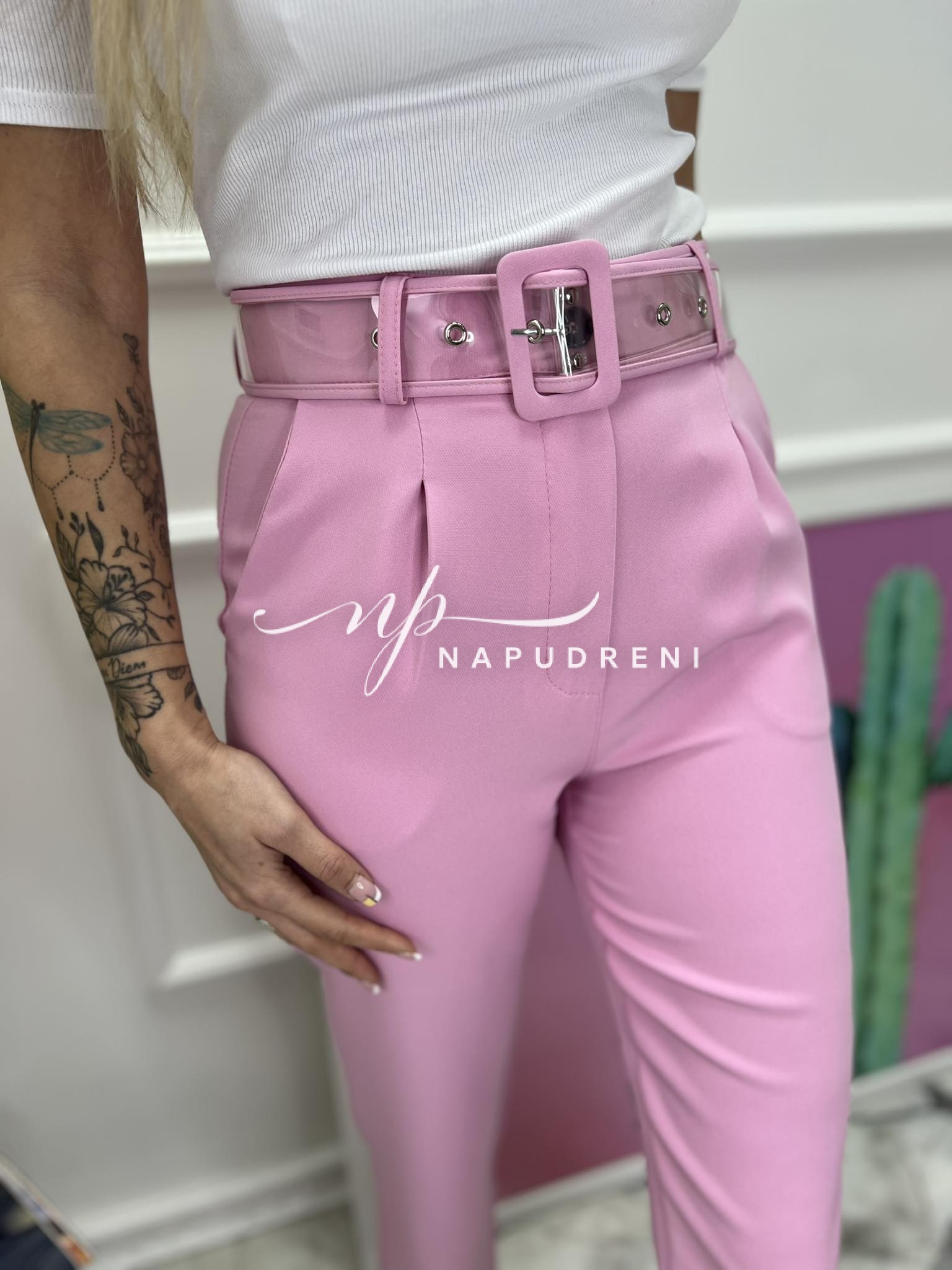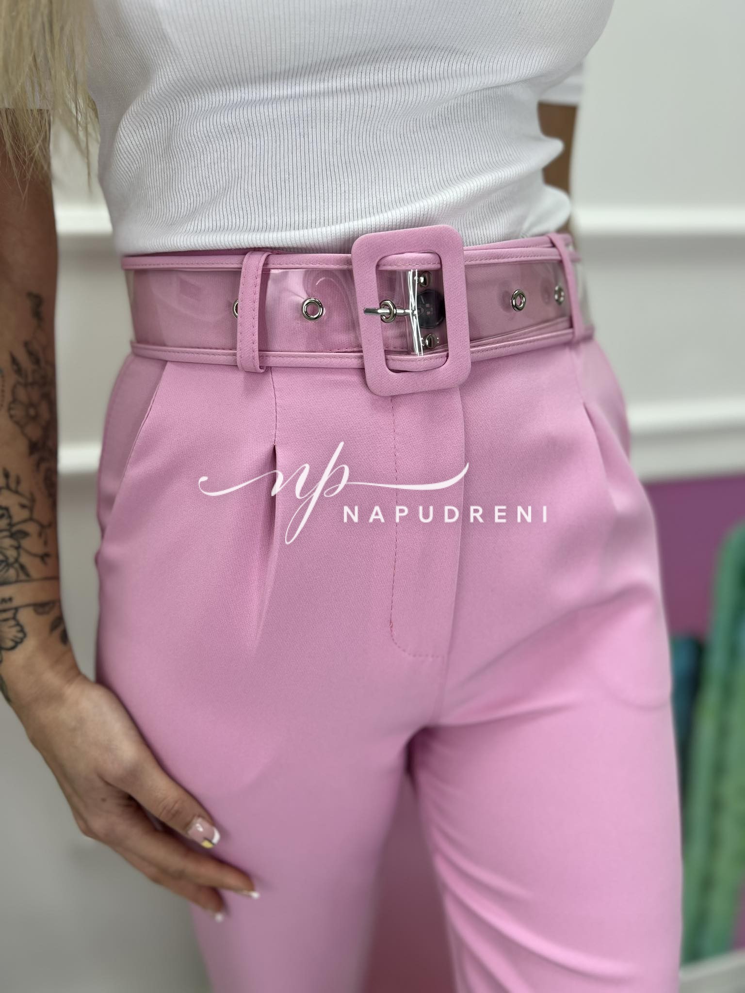 Дамски панталон с прозрачен колан в розов цвят – код 6790