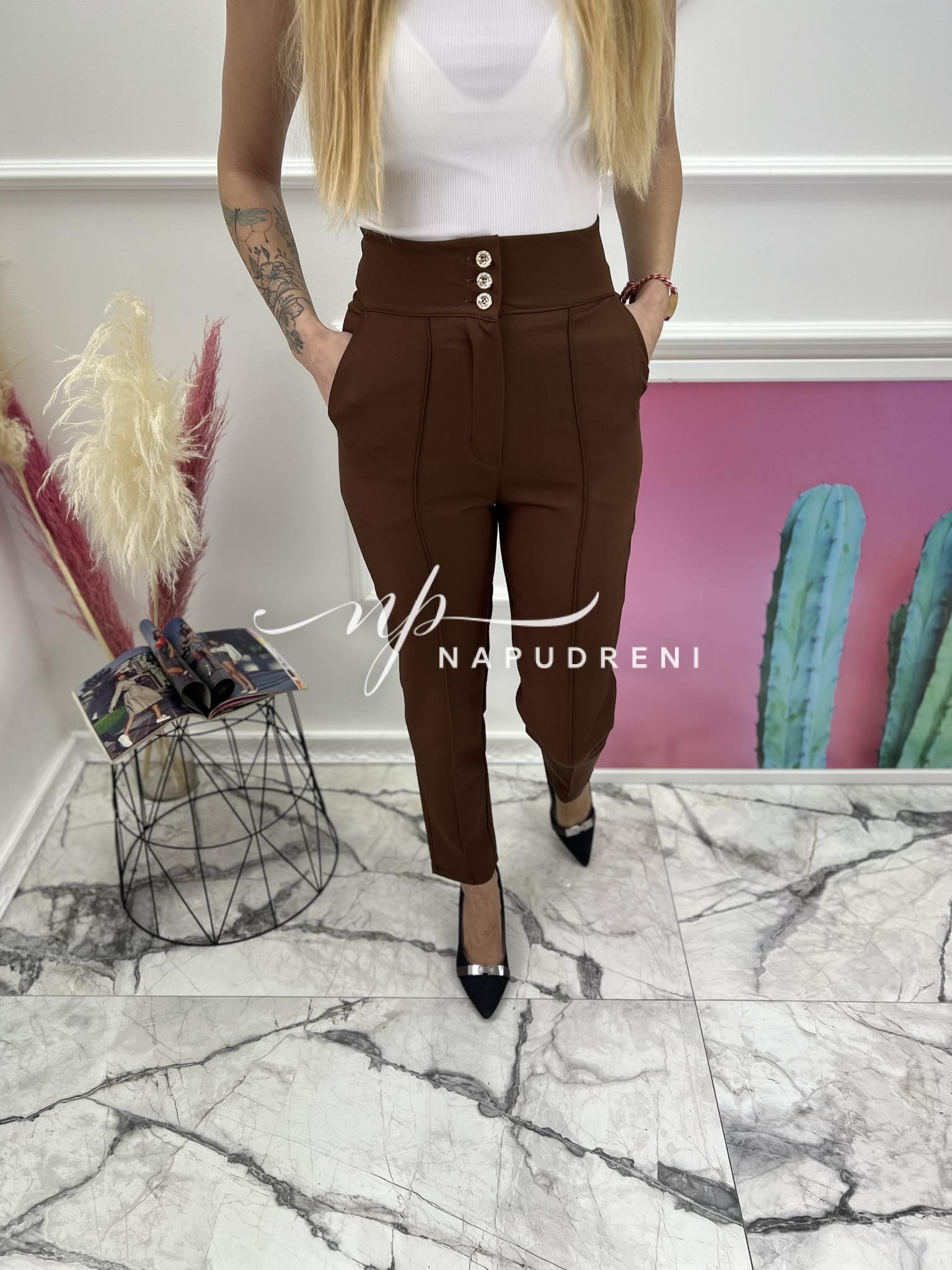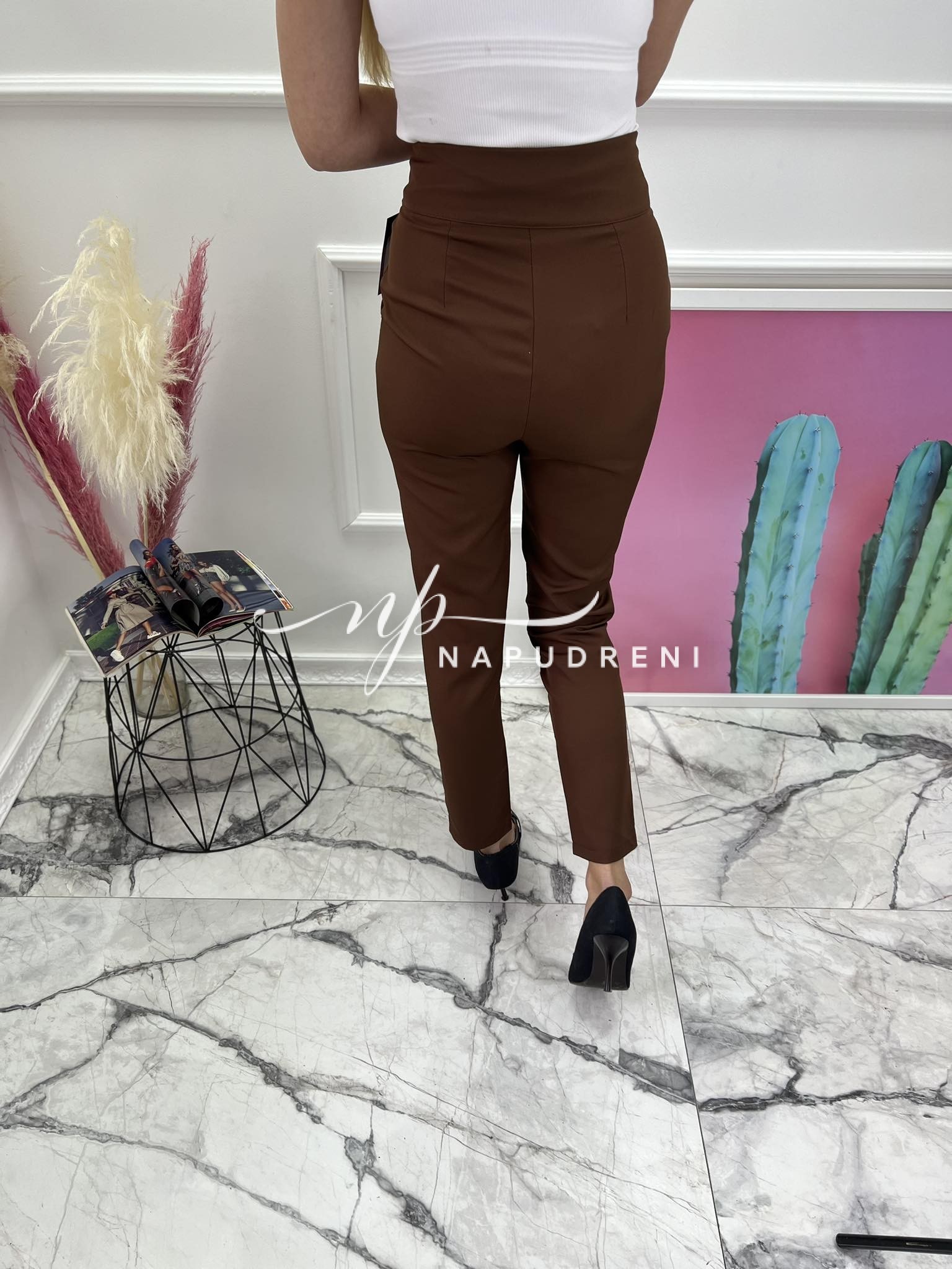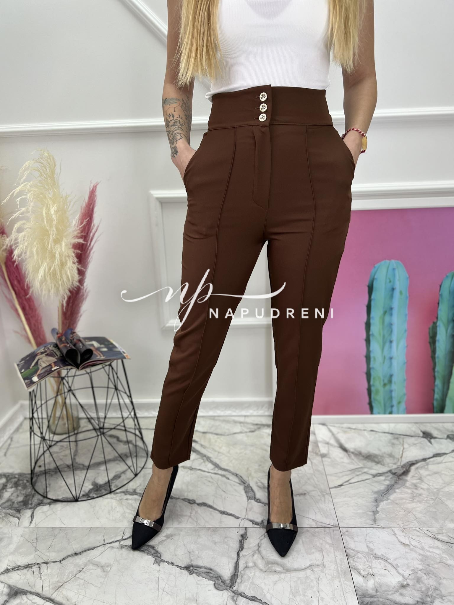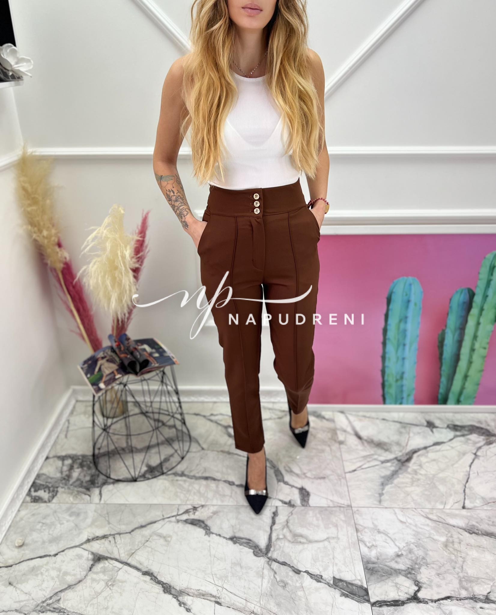 Дамски панталон с ръб в кафяв цвят -код 6946