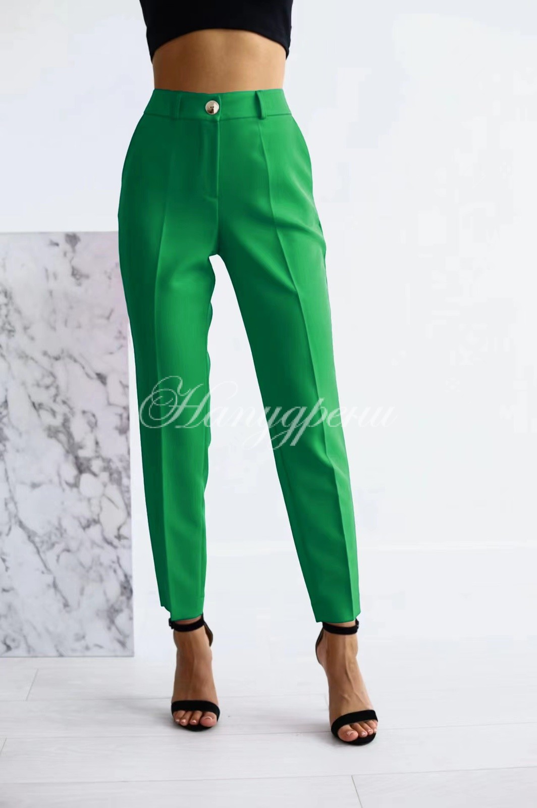 Панталон с висока талия и ръб в зелен цвят – код 6037