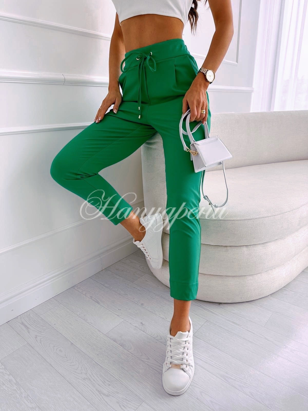 Тренди панталон с висока талия в зелен цвят – код 4442