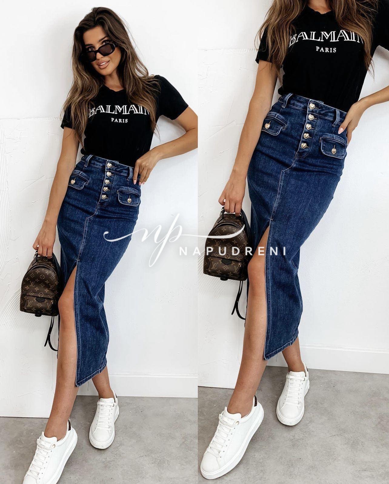 Дълга дънкова пола в тъмносин цвят – код 7104
