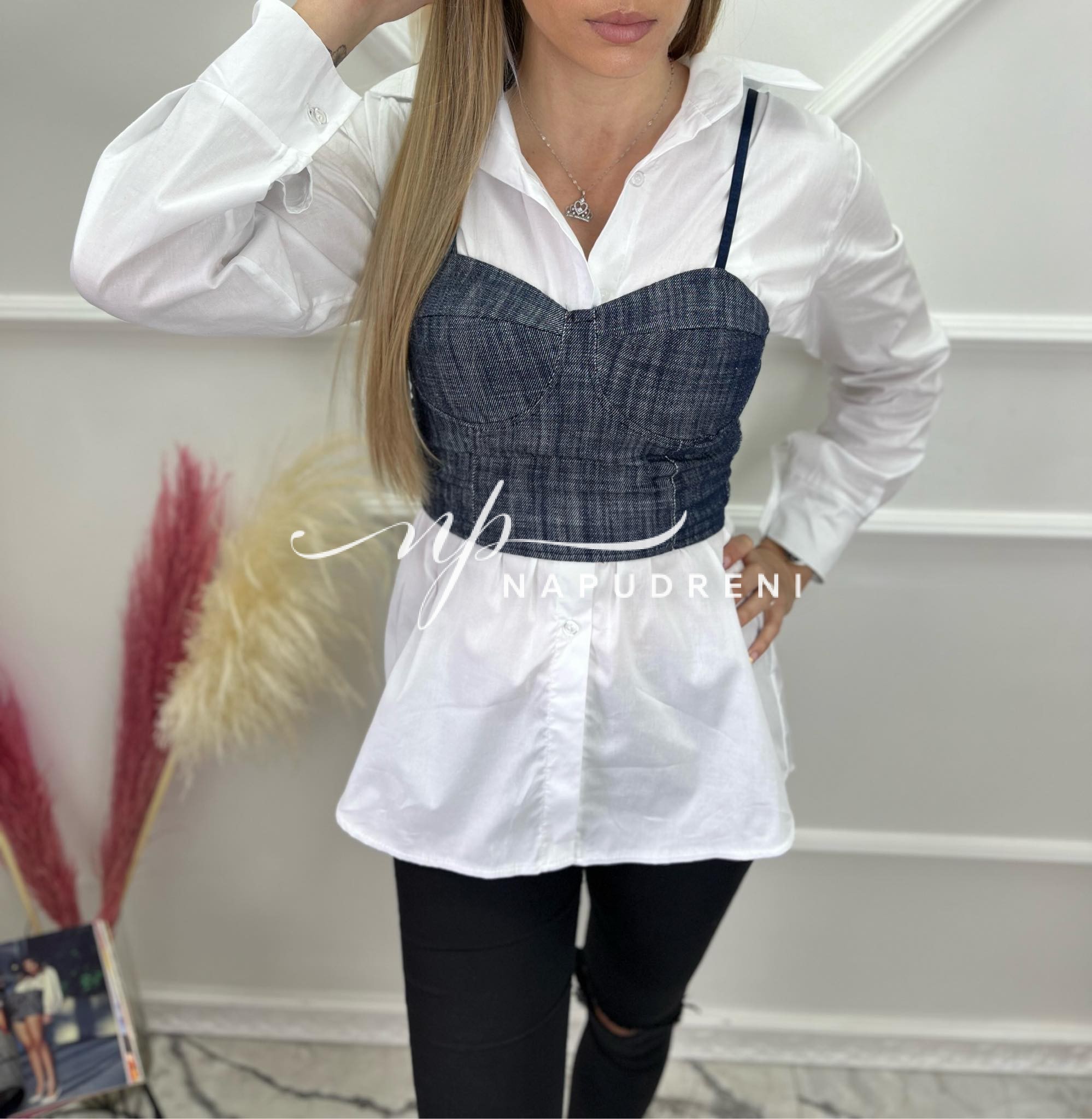 Бюстието и ризата са две отделни части, като презрамките на бюстието се регулират.