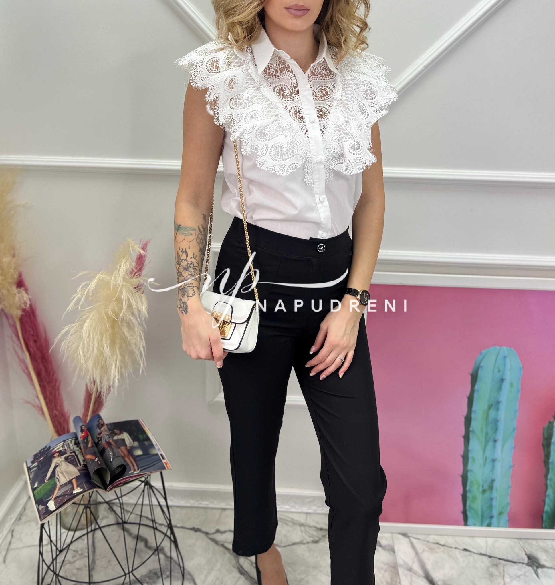 Дамска риза с дантела в бял цвят – код 6866