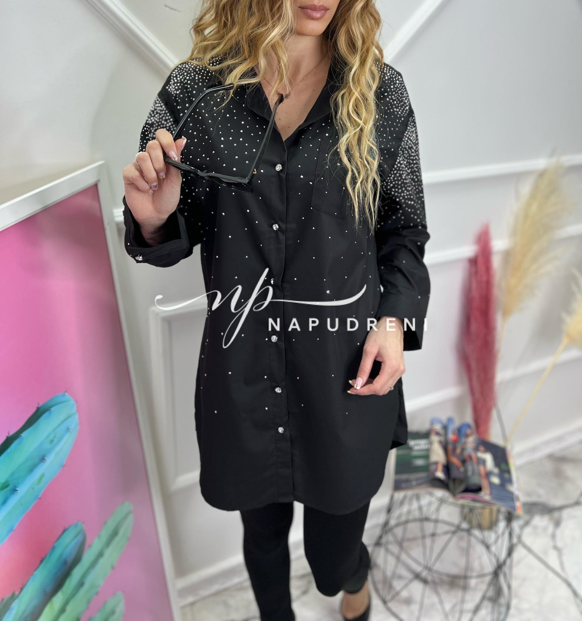 Be the first to review “Дамска риза с камъчета в черен цвят – код 6729”