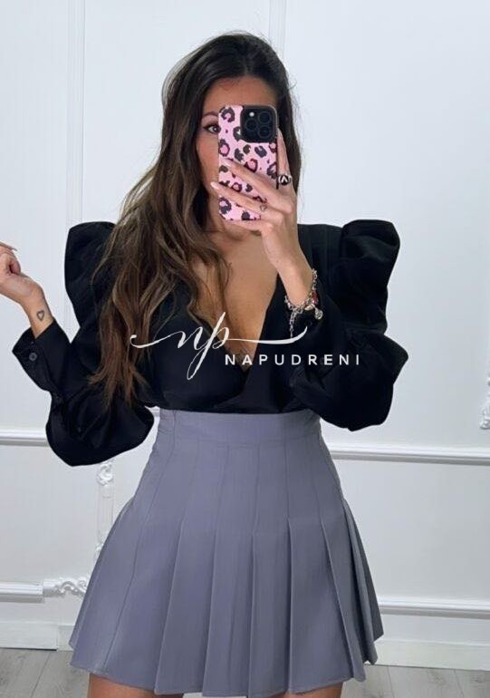 Сатенено боди с отворено деколте и буфан ръкави в черен цвят – код 6810