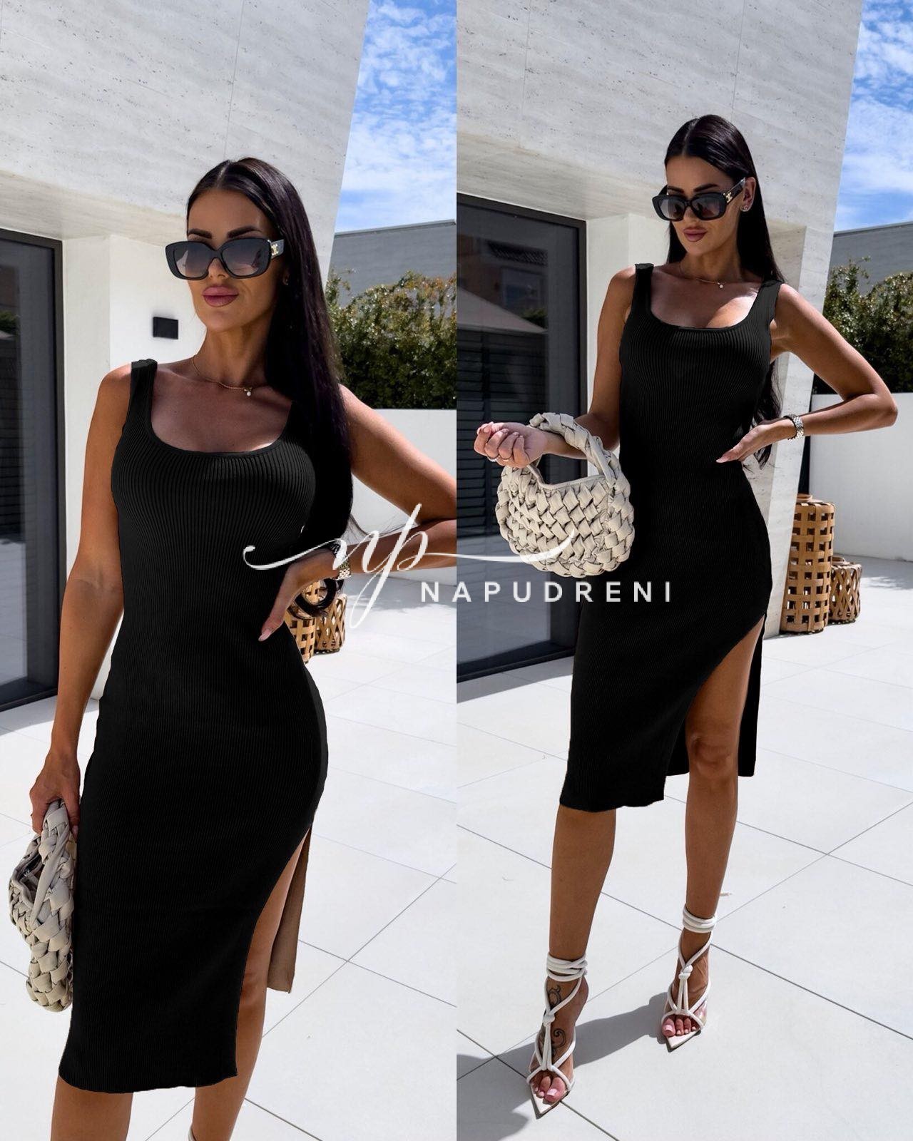 Дамска изчистена рокля с цепка в черен цвят – код 7451