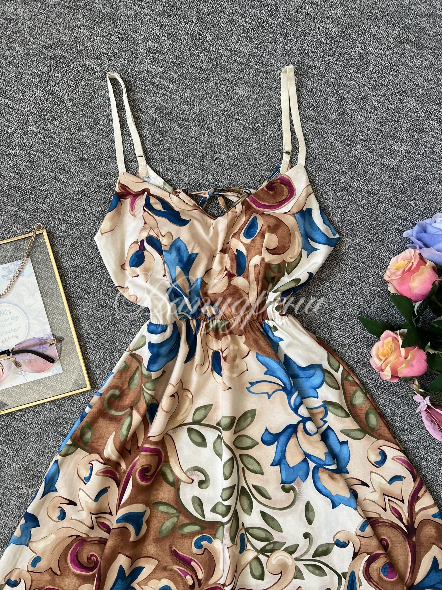 Модела е с твърда чашка и регулиращи се презрамки. Дължина 99 см.