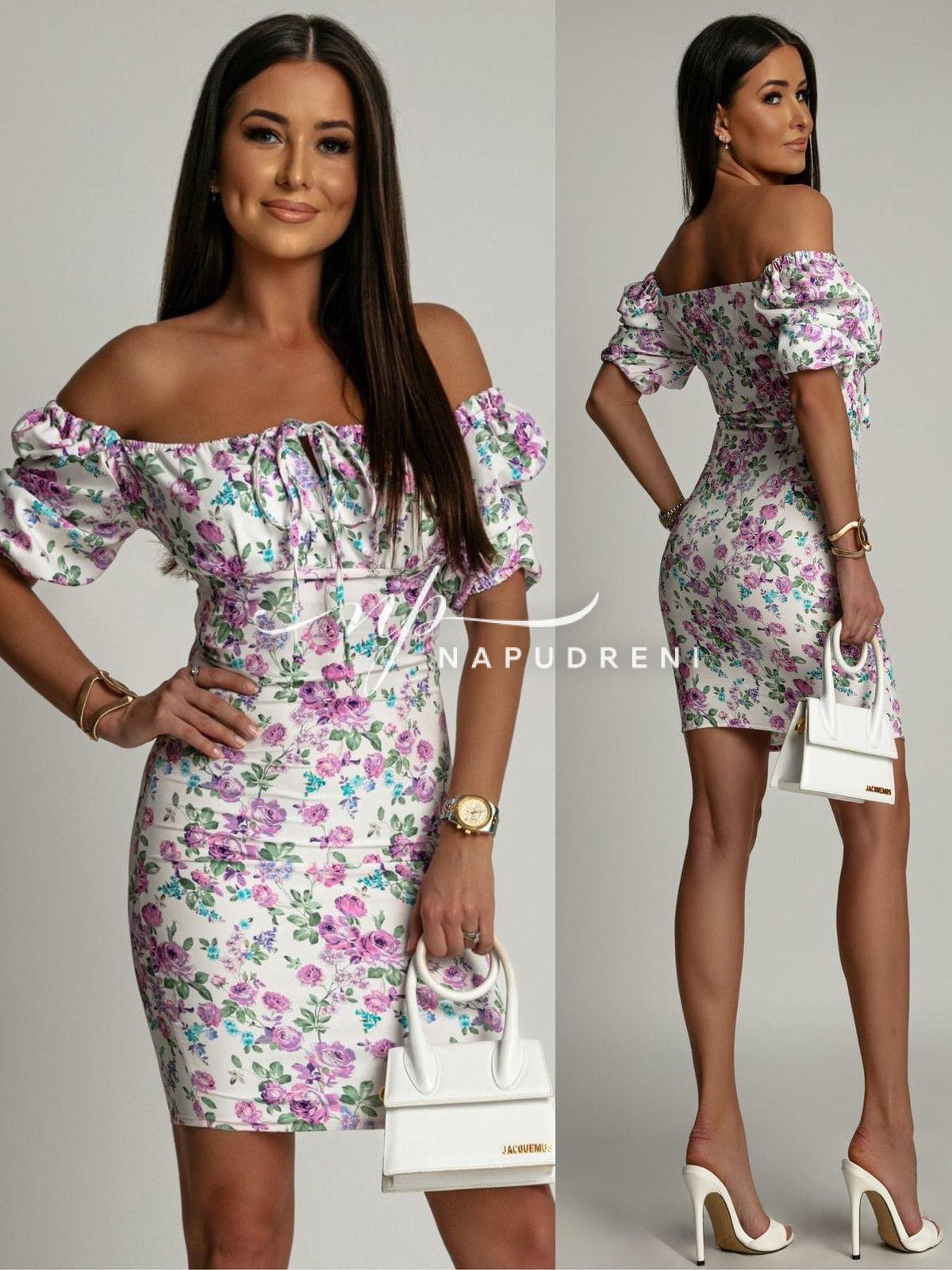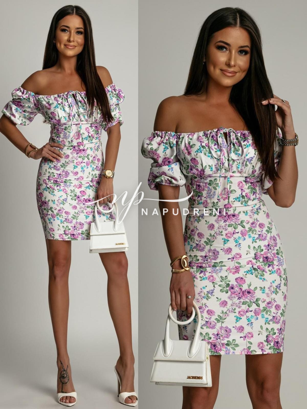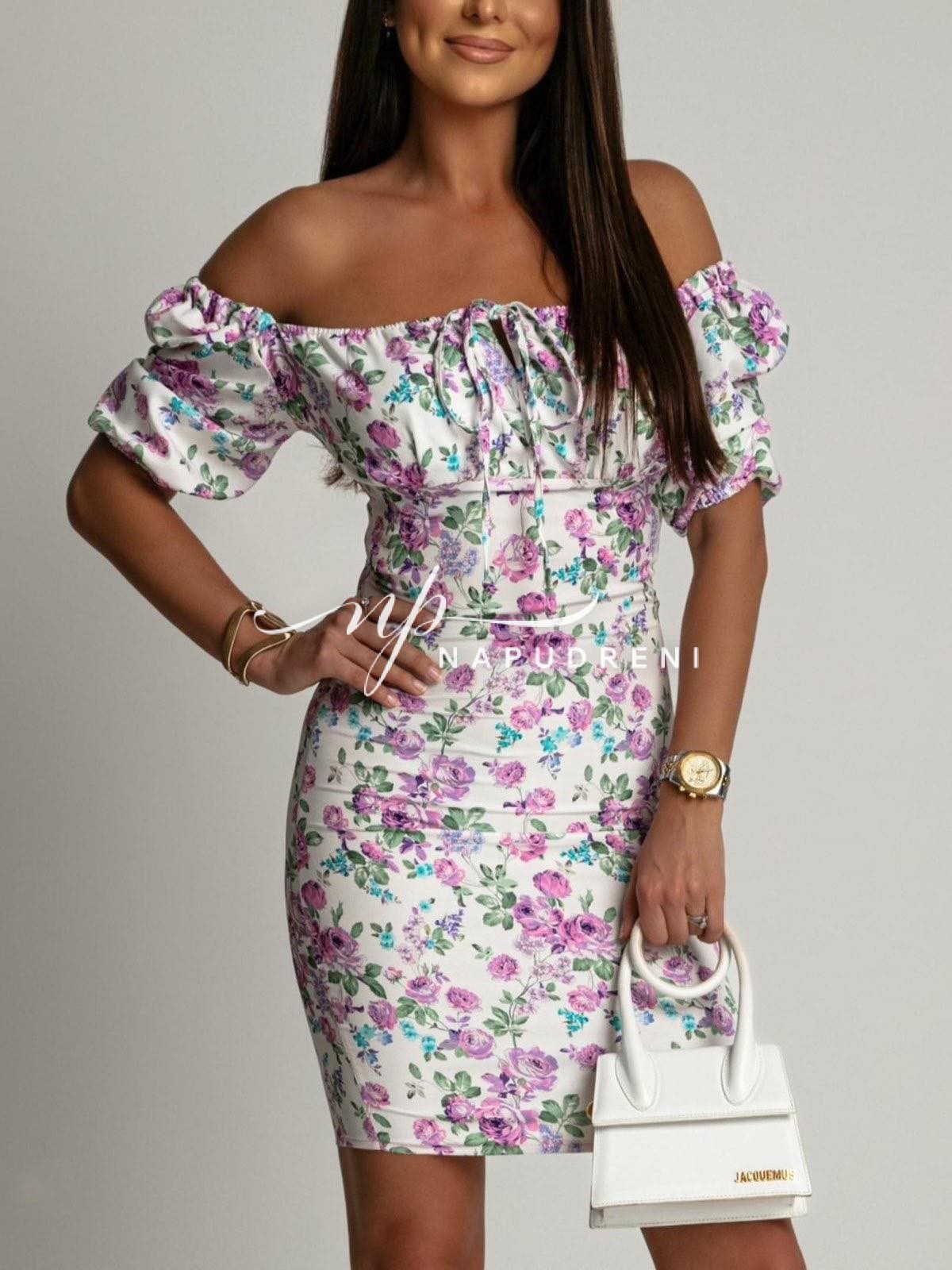 Дамска рокля “Miny” на цветя в бял цвят – код 7438
