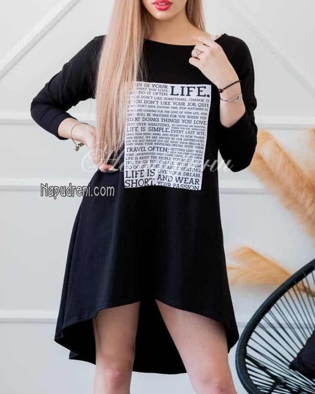Дамска туника/рокля Letter в черен цвят – код 1730