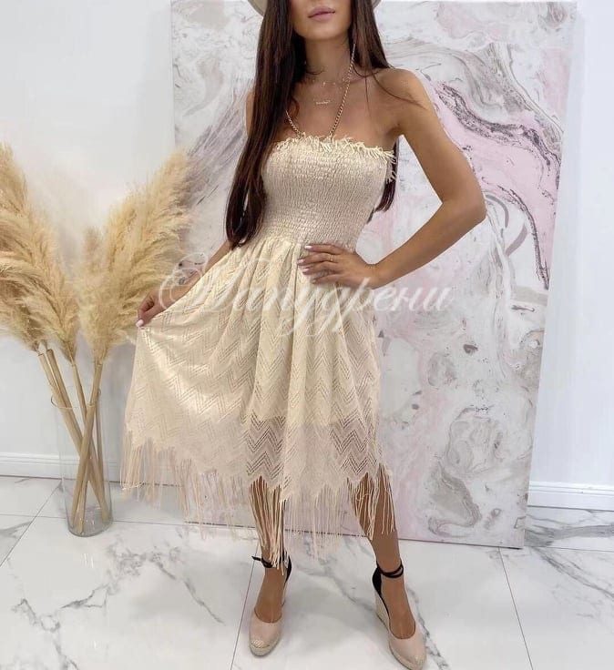Моделът е със затворено деколте.