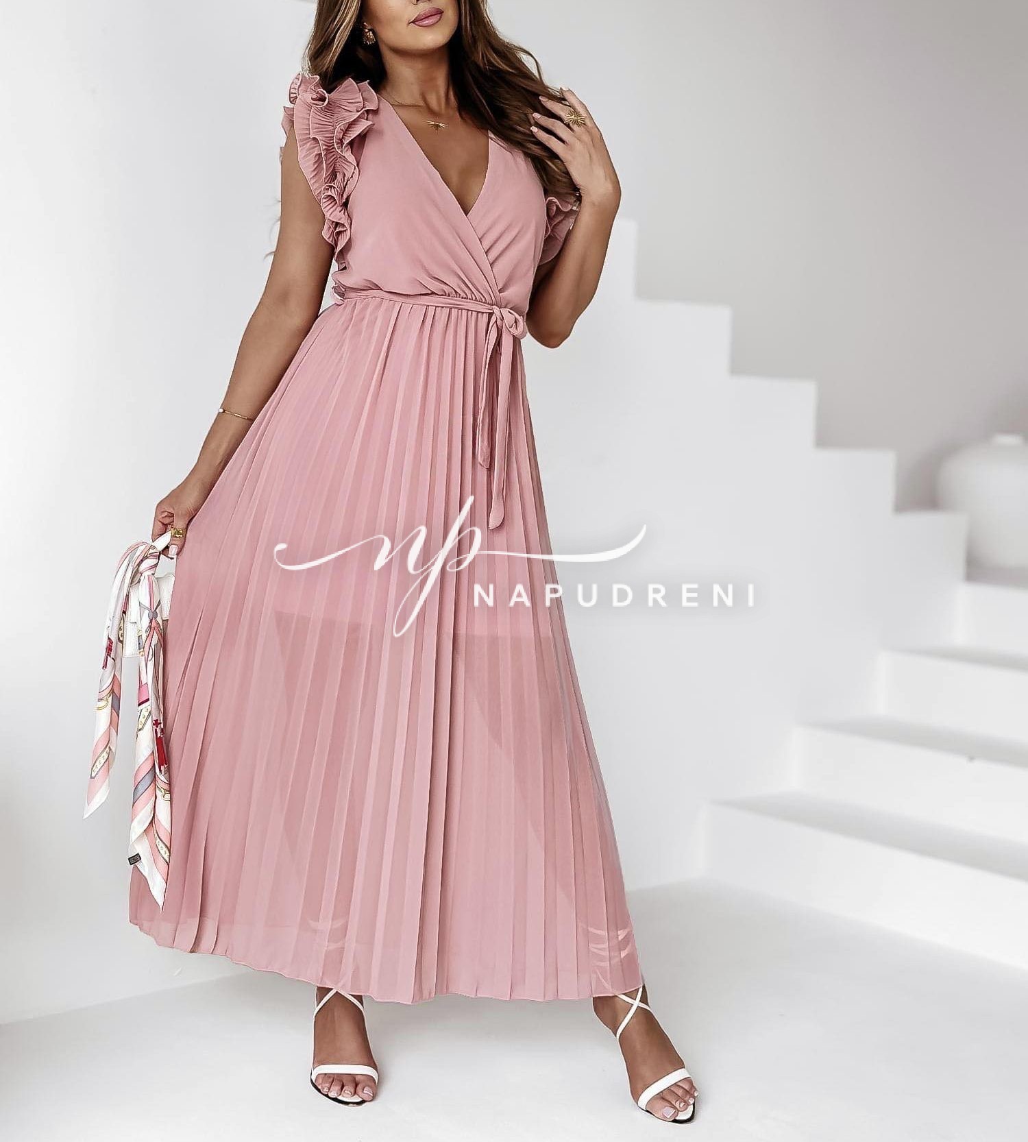 Be the first to review “Дамска плисирана дълга рокля в цвят пудра – код 7293”
