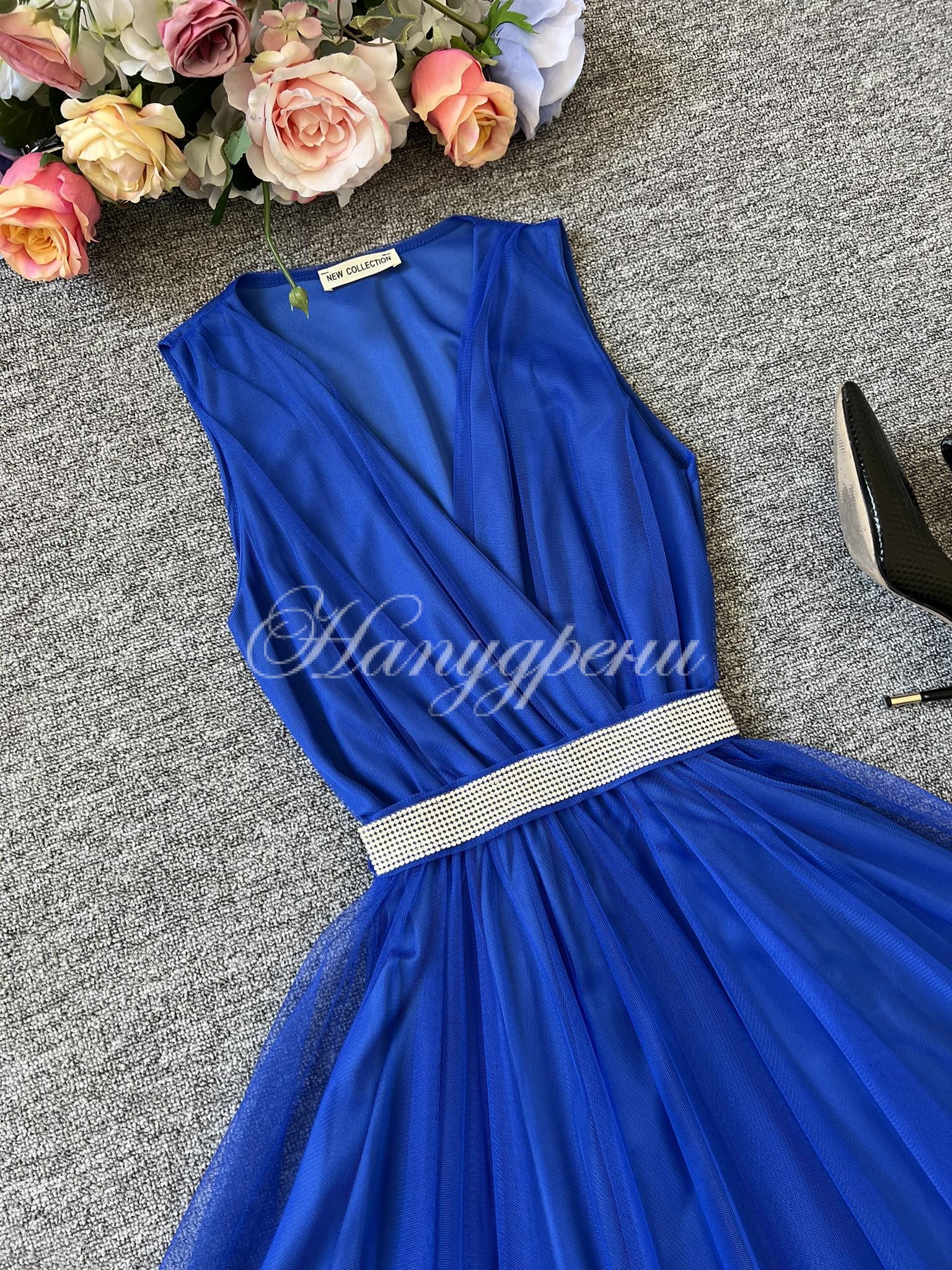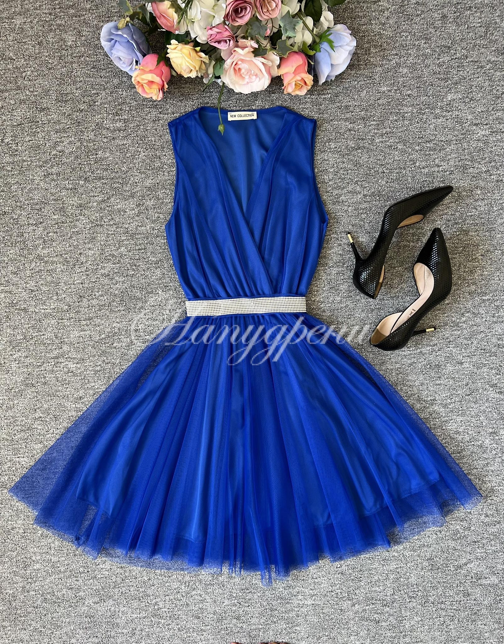 Моделът е с ефектно блестящо коланче в областта на талията.