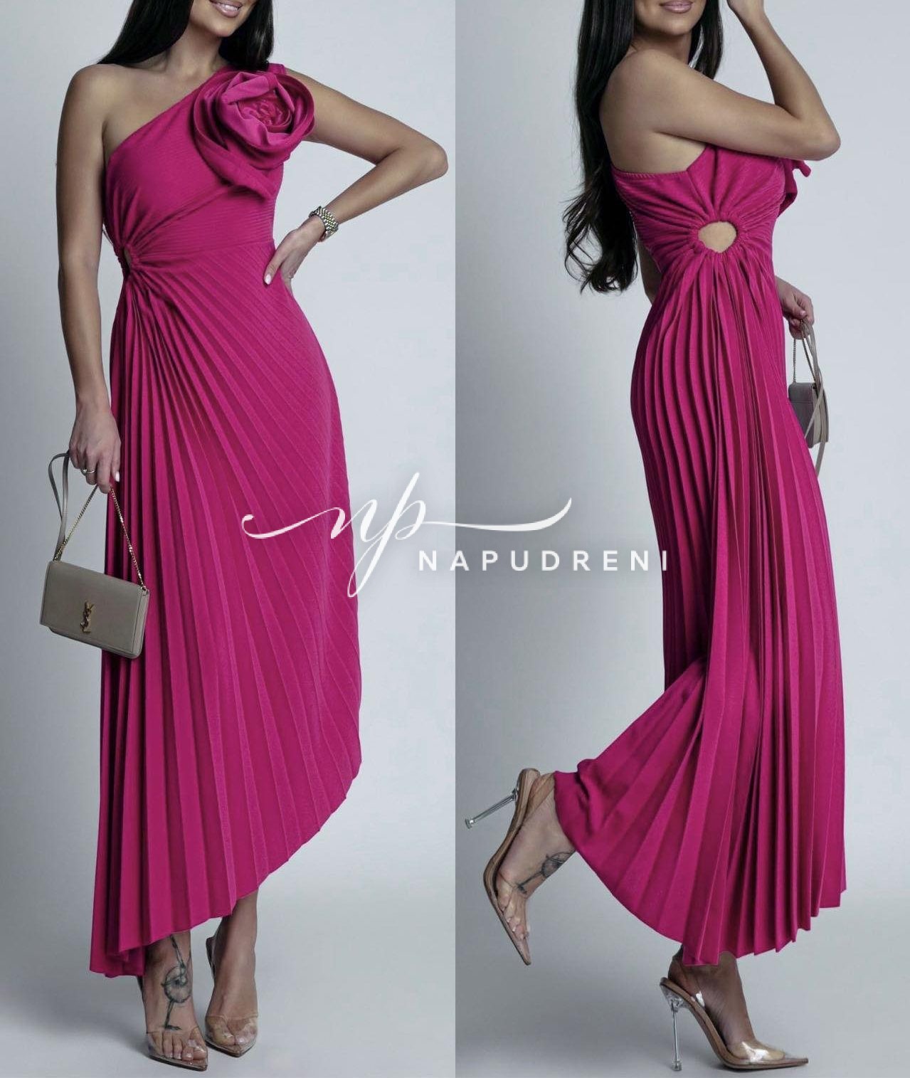 Дамска рокля “Ivanyna” в цикламен цвят – код 7473