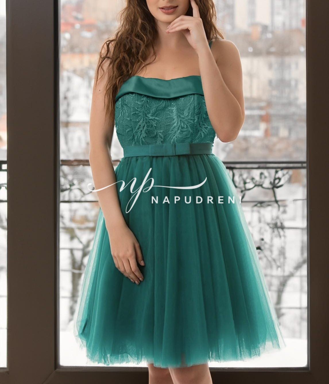 Be the first to review “Дамска рокля от сатен и дантела в зелен цвят – код 7224”