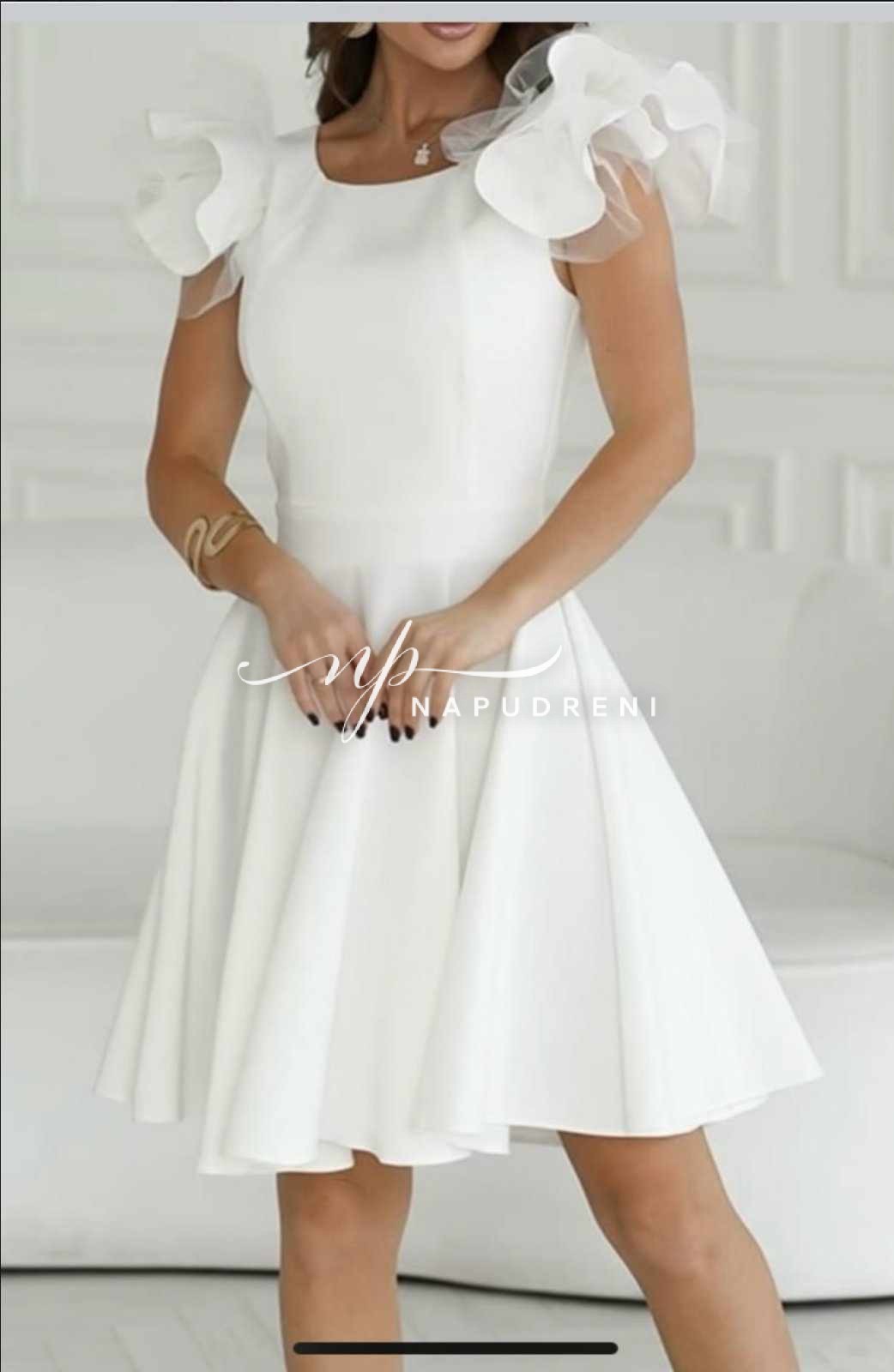 Дамска рокля с ефектни ръкави в бял цвят – код 7395