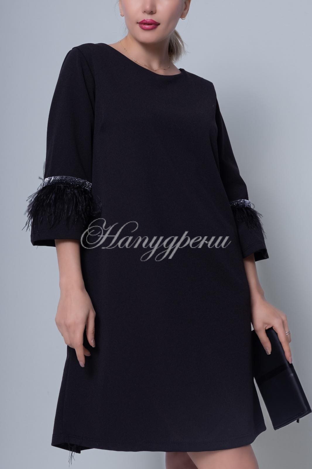 Дамска рокля с ефектни ръкави в черен цвят – код 6372