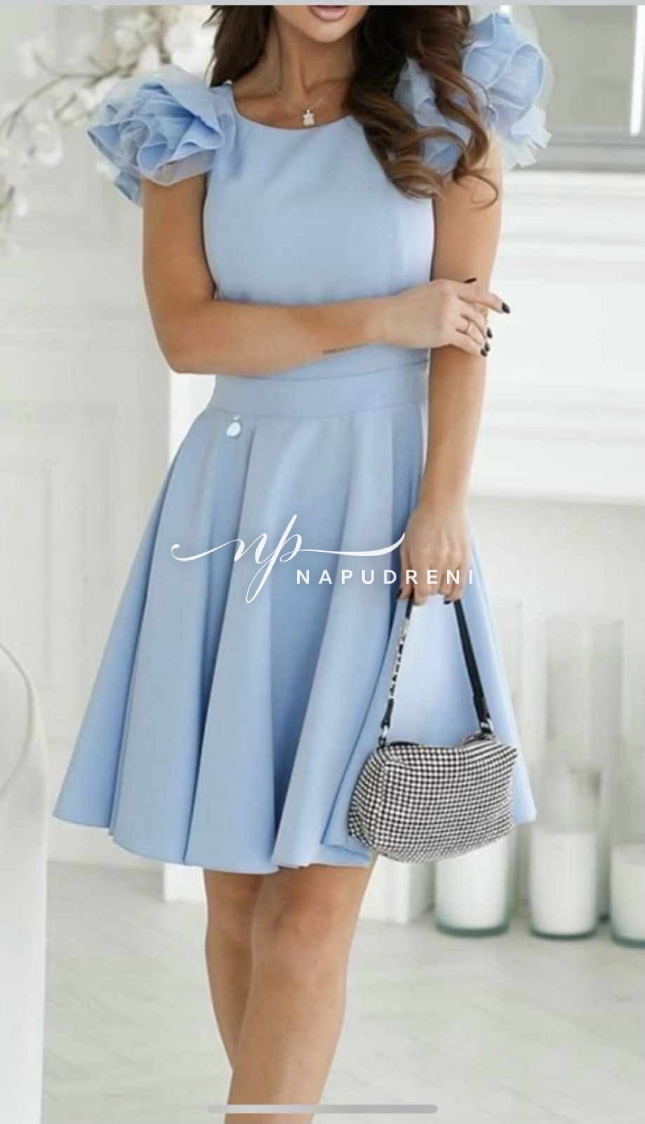 Дамска рокля с ефектни ръкави в светлосин цвят – код 7396