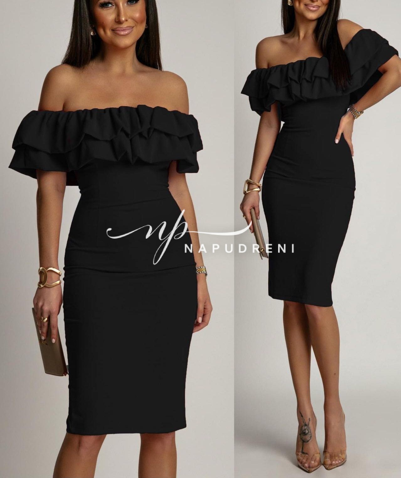 Дамска рокля с паднали рамена в черен цвят – код 7380