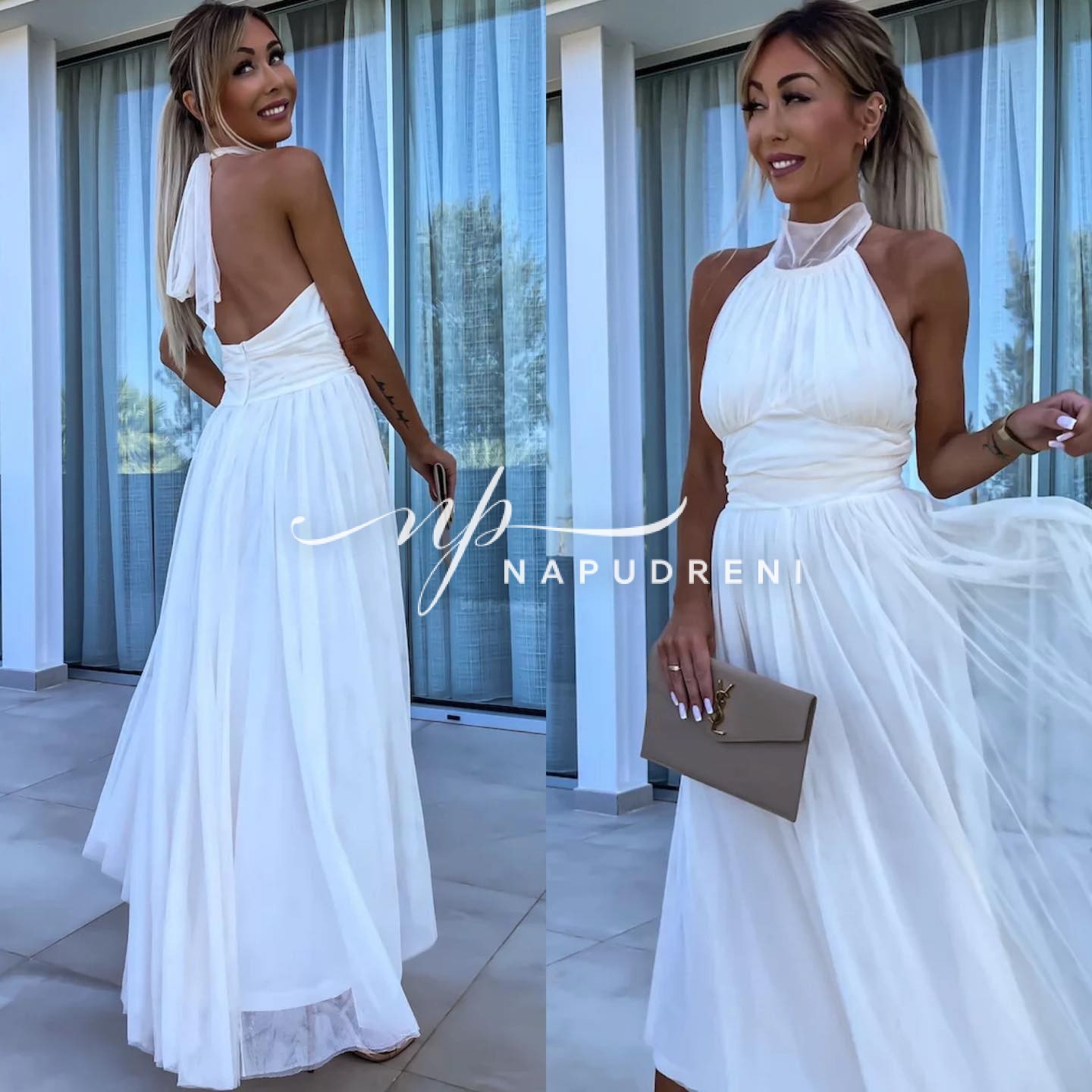 Be the first to review “Дамска рокля с тюл и ефектна кройка в бял цвят – код 6910”