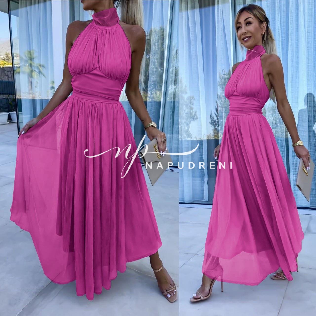 Be the first to review “Дамска рокля с тюл и ефектна кройка в цикламен цвят – код 6909”