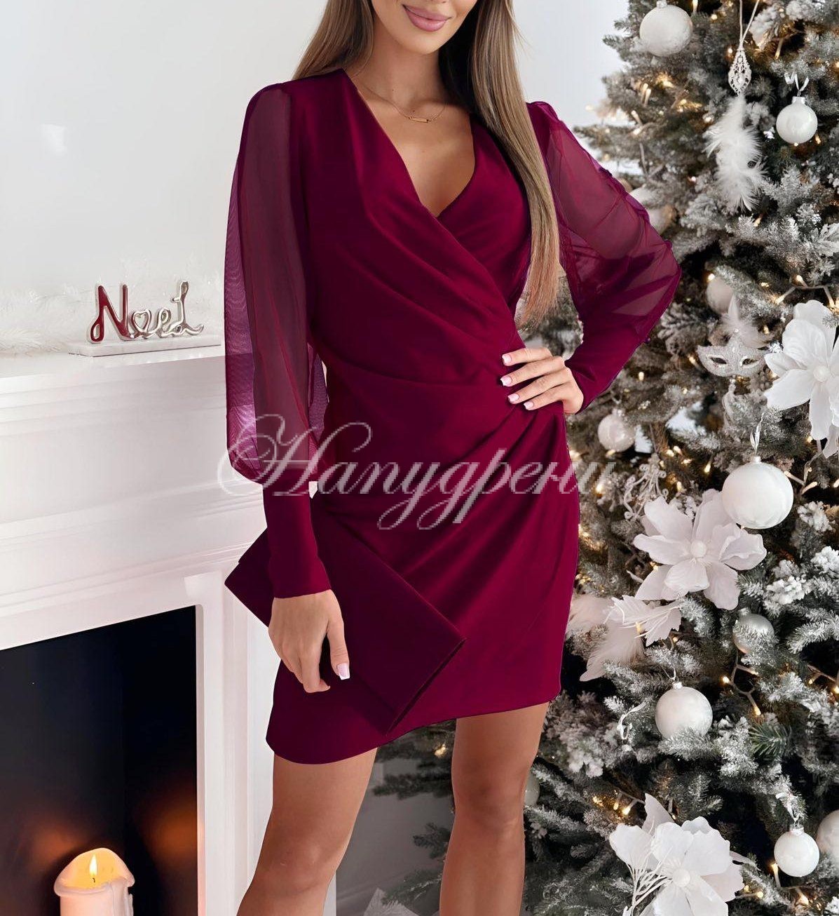Дамска рокля с тюлени ръкави в цвят бордо – код 6355