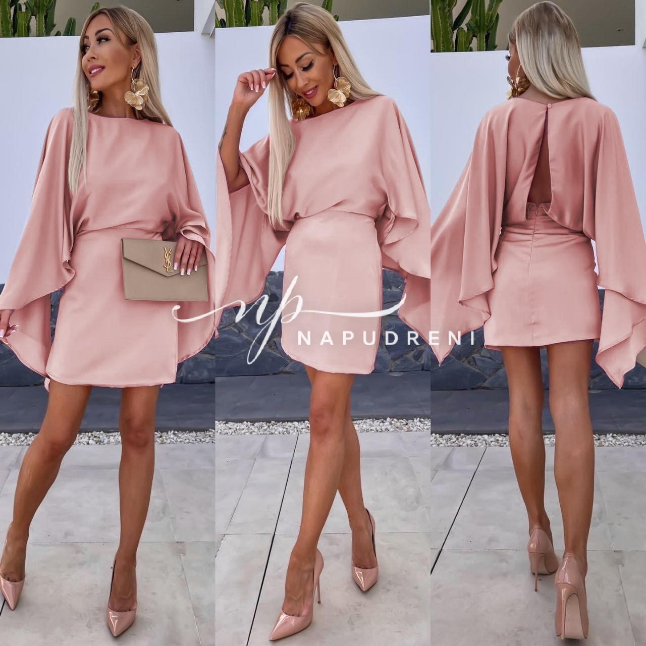 Дамска сатенена рокля “Unique” в розов цвят – код 7166